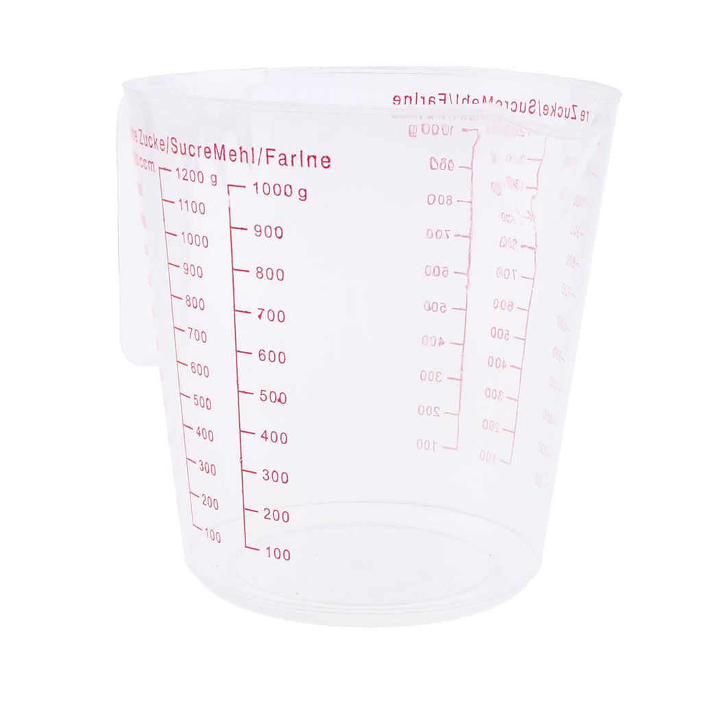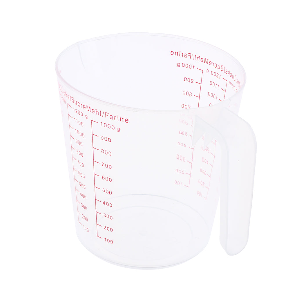 Situable for measuring a varity of liquid such as flour, sugar, cocoa, water, alcohol, milk, oil, vinegar, sauce, etc.