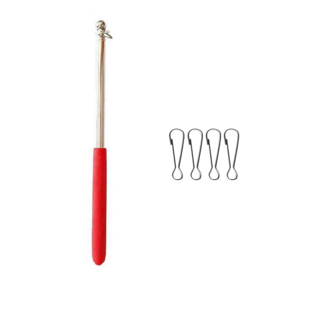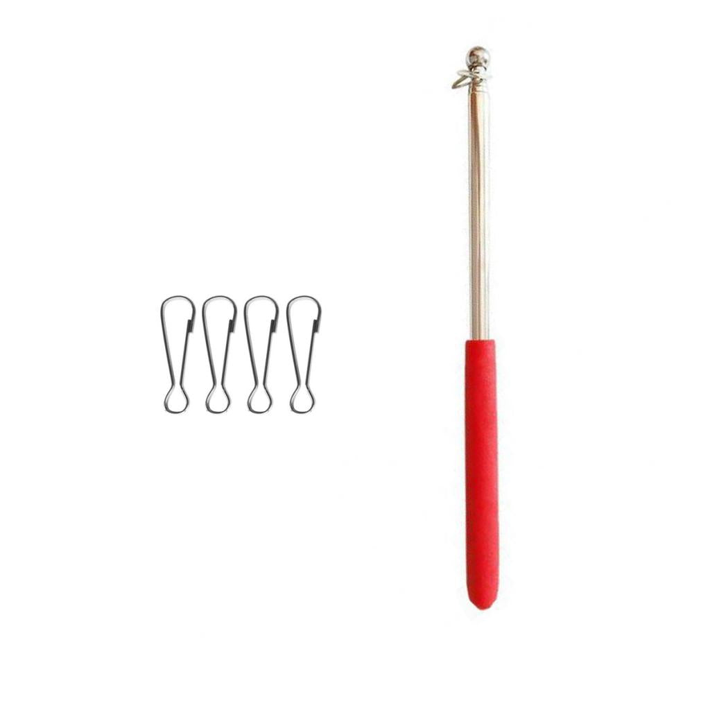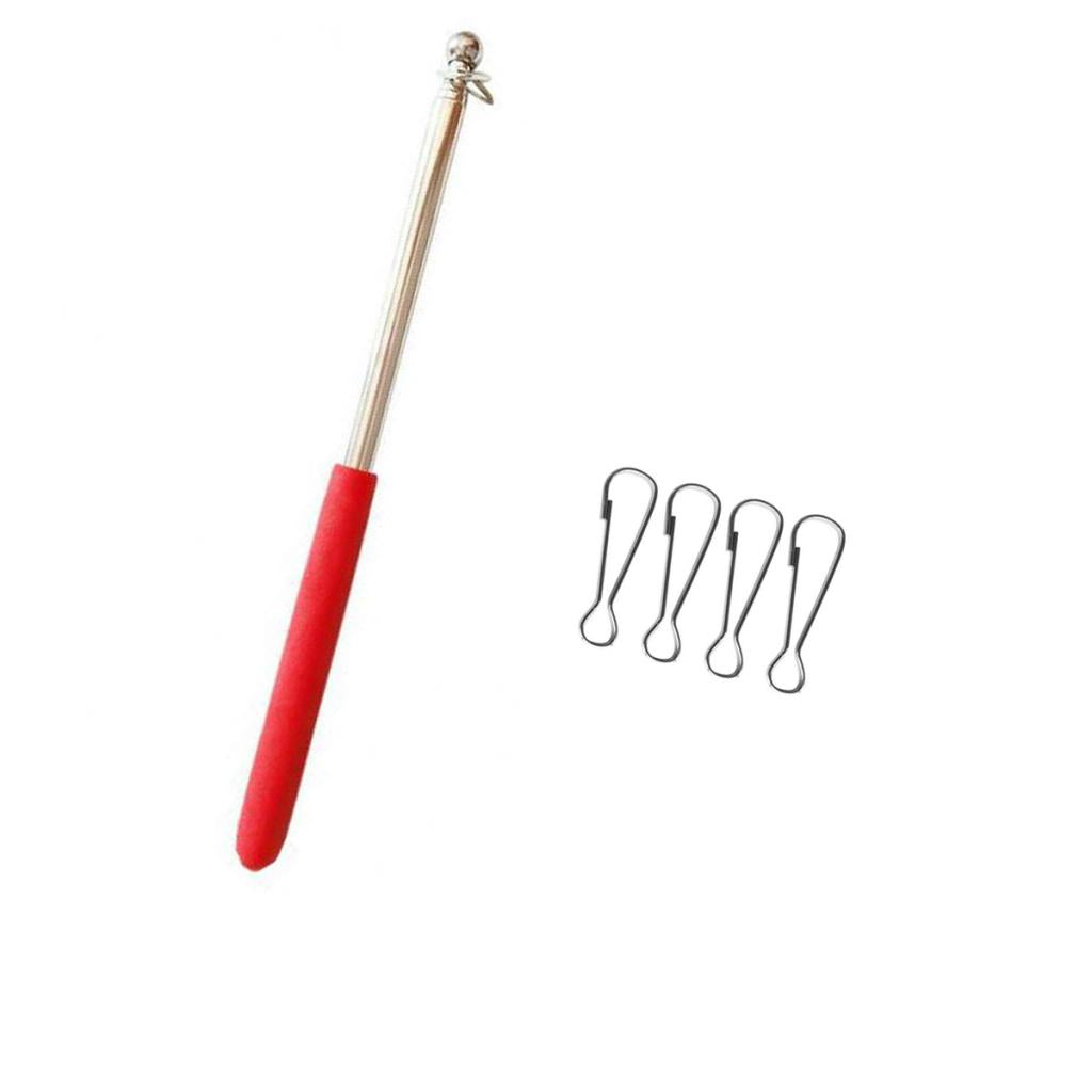 1m Red Telescopic Stainless Steel Flagpole Guide Pole with Clip Snaps Hook