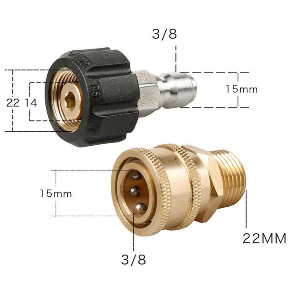 2 x Pressure Washer Couplers, 3/8'' Quick Connect + M22 Male
