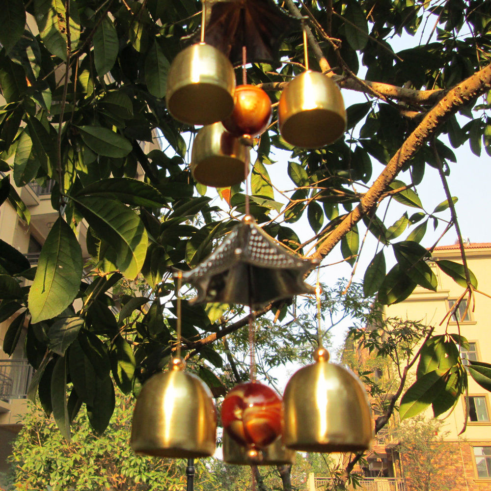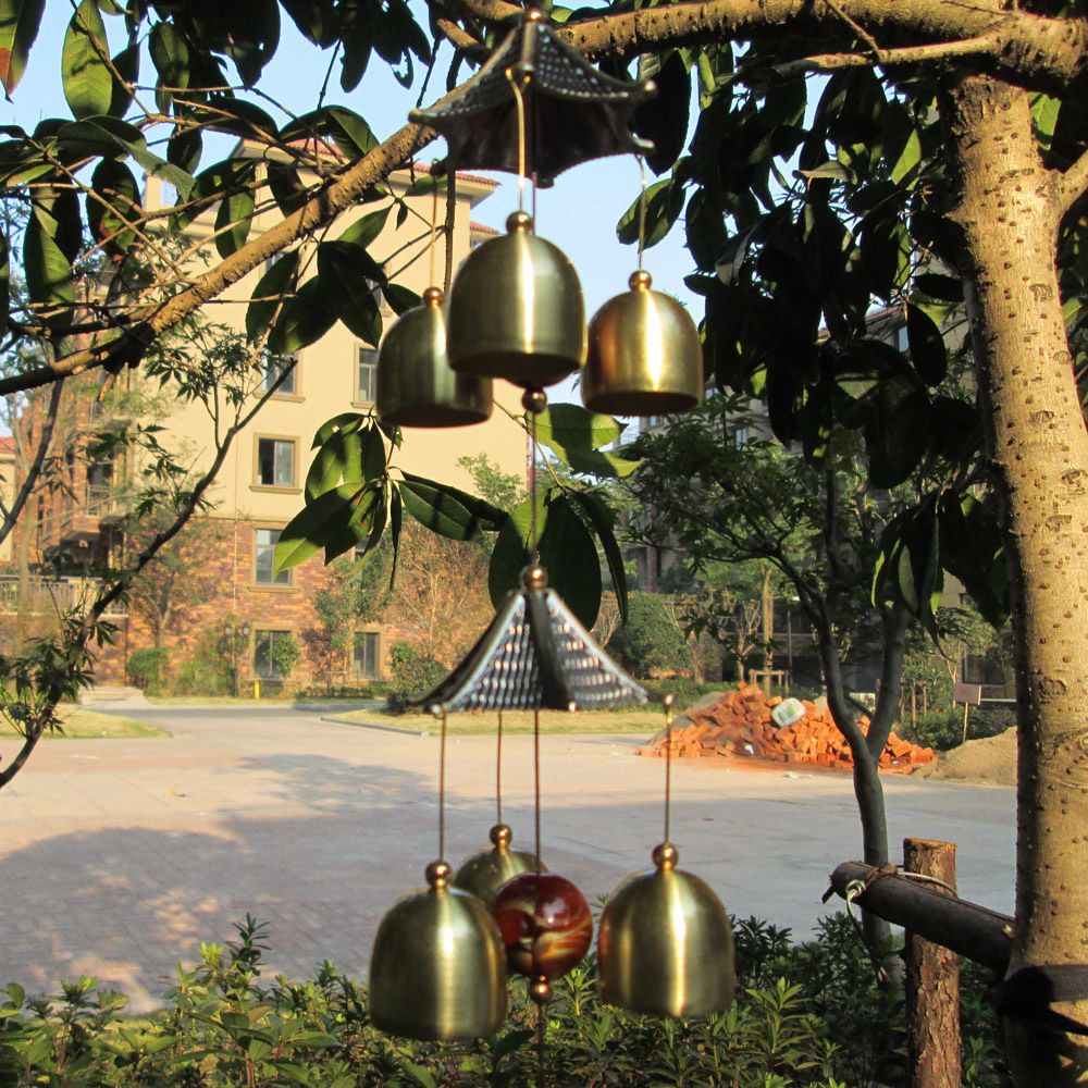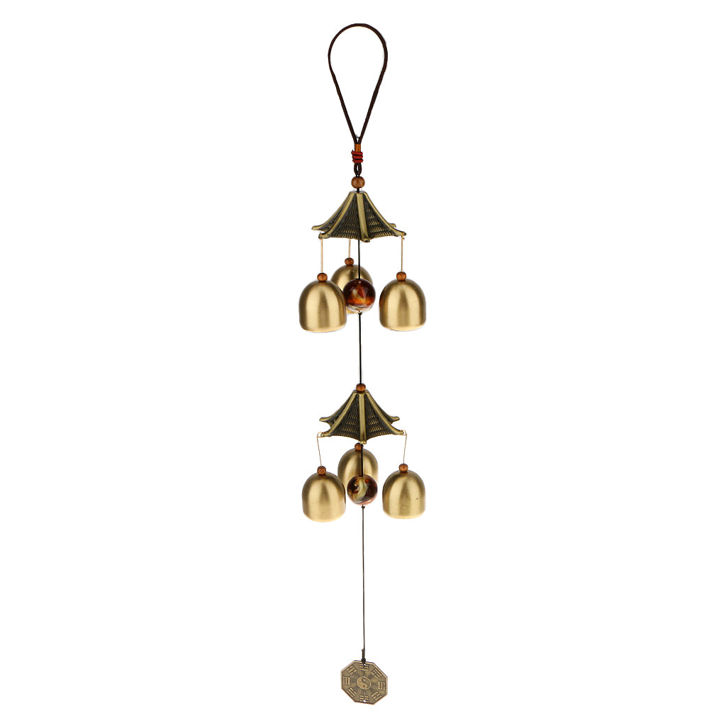 Chinese Wind Chime 2-Layer Roof 6 Bells Lucky Feng Shui Yard Garden Decor