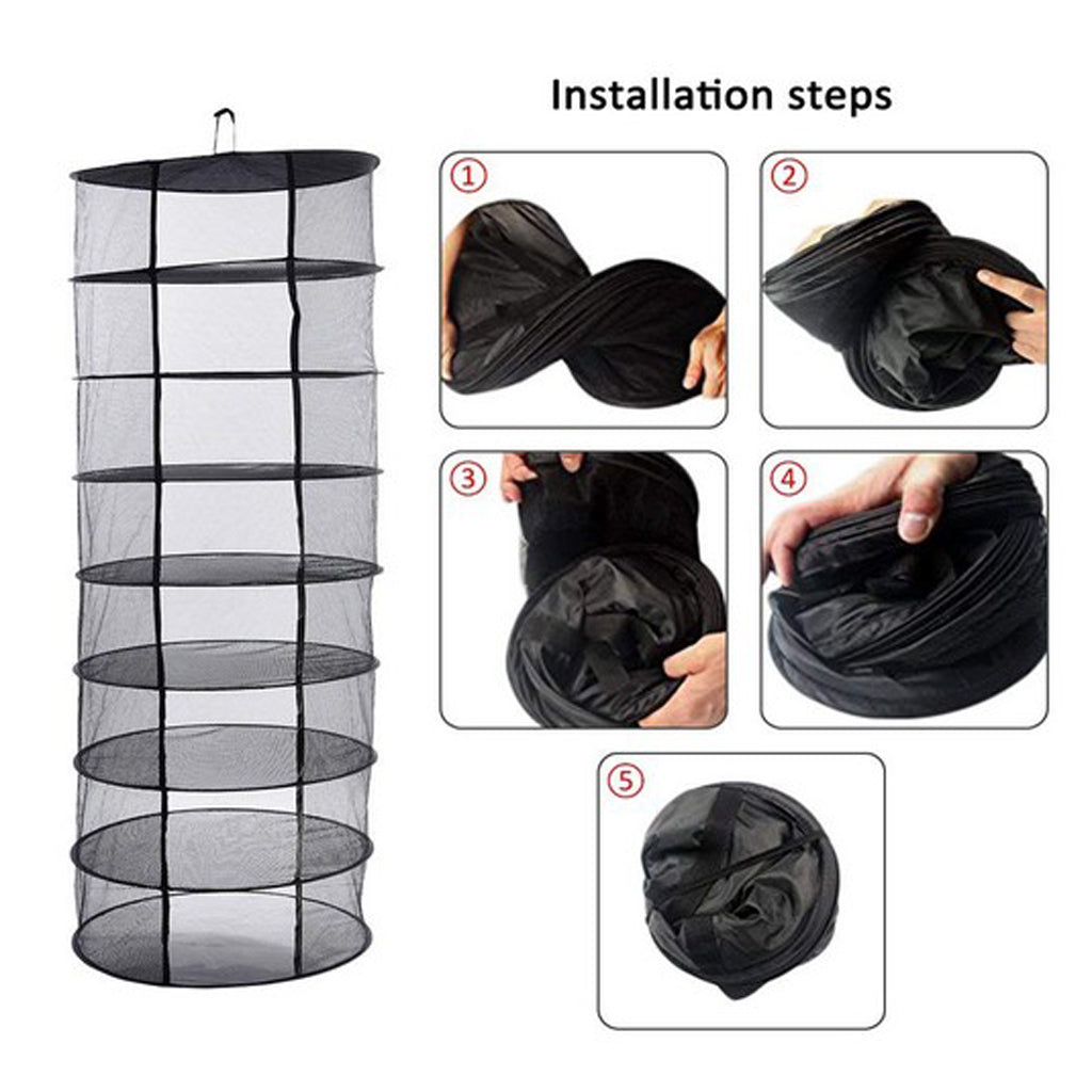 Collapsible Herb Drying Net Dryer Mesh Rack with Zipper 8-Layer Black