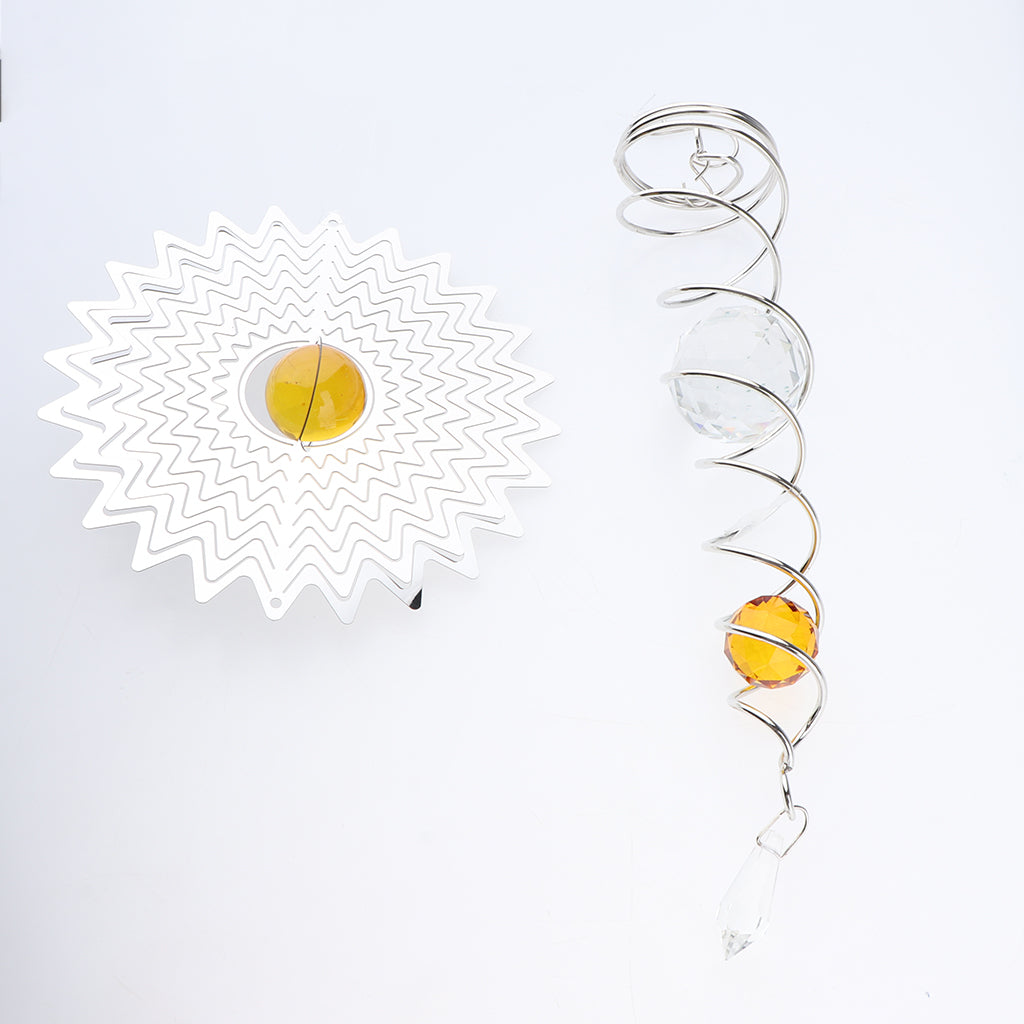 Creative Stainless Steel Crystal Spiral Wind Spinner Yellow