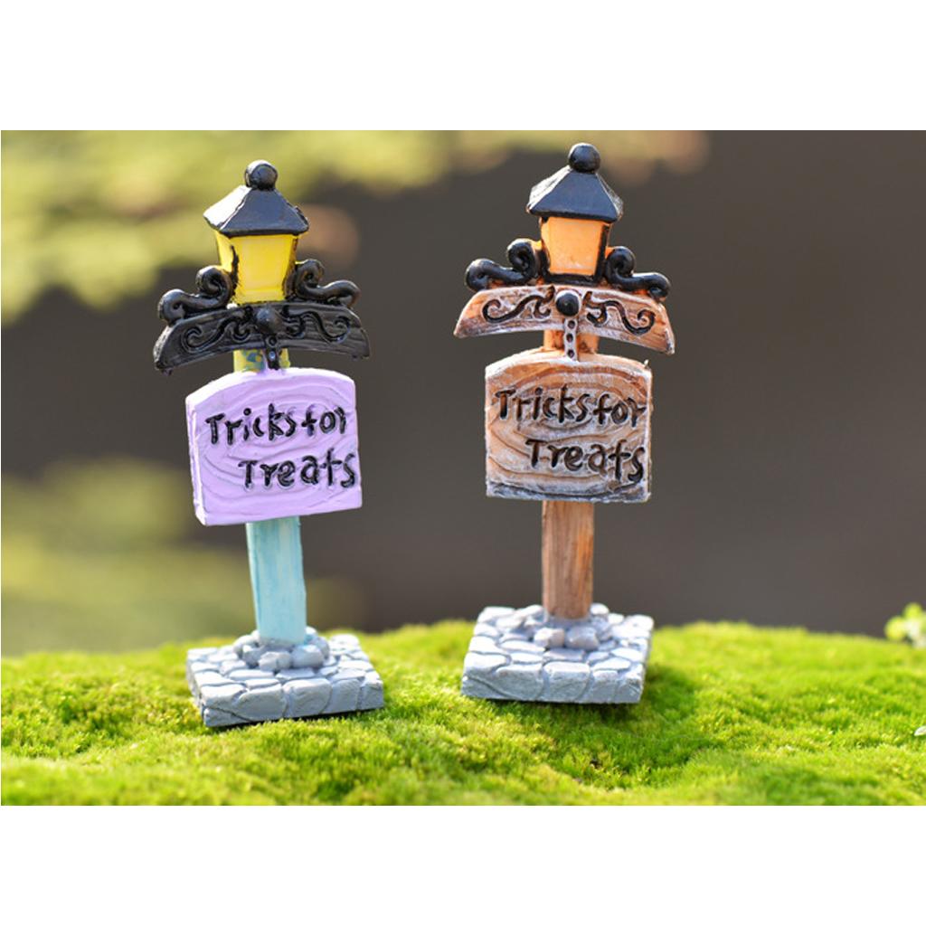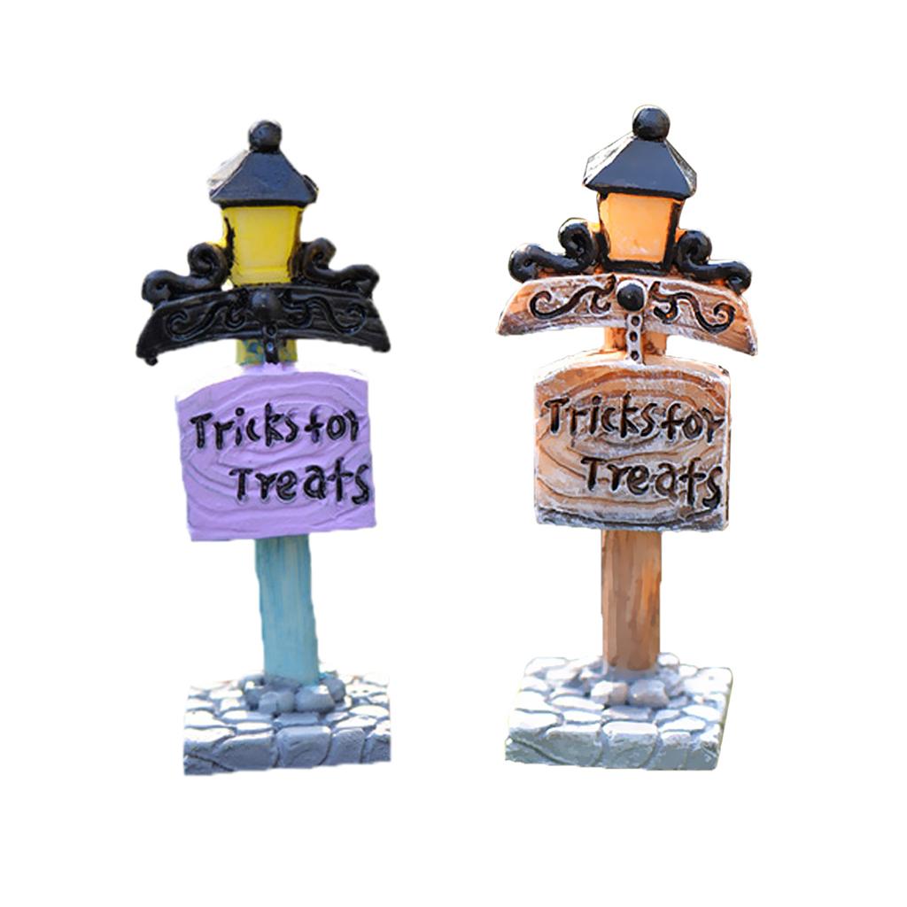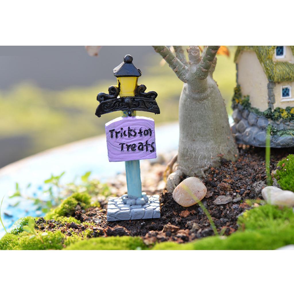 Durable Micro Landscape Mini Resin Miniature Bonsai Fairy Garden Decor Street Signpost Statue Home Garden Decor Purple