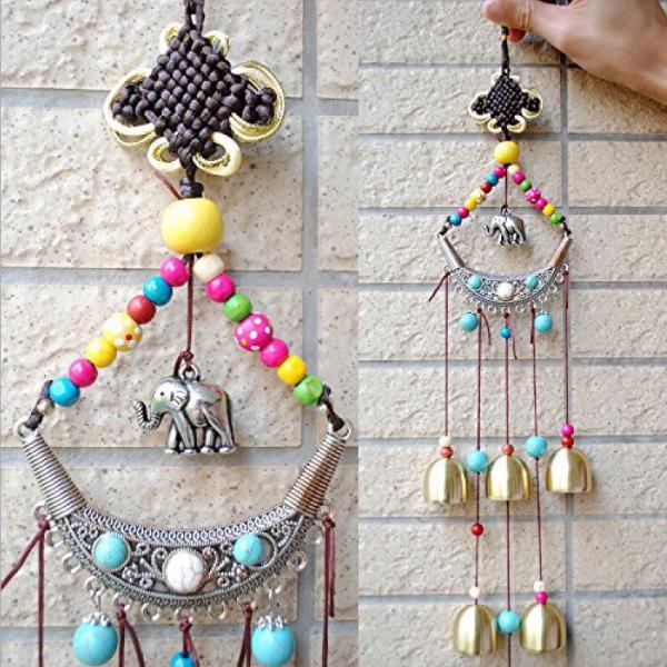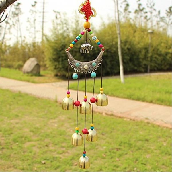 Hanging Lucky Copper Elephant Wind Chimes 6 Bells Chinese Knot Bead Windbell