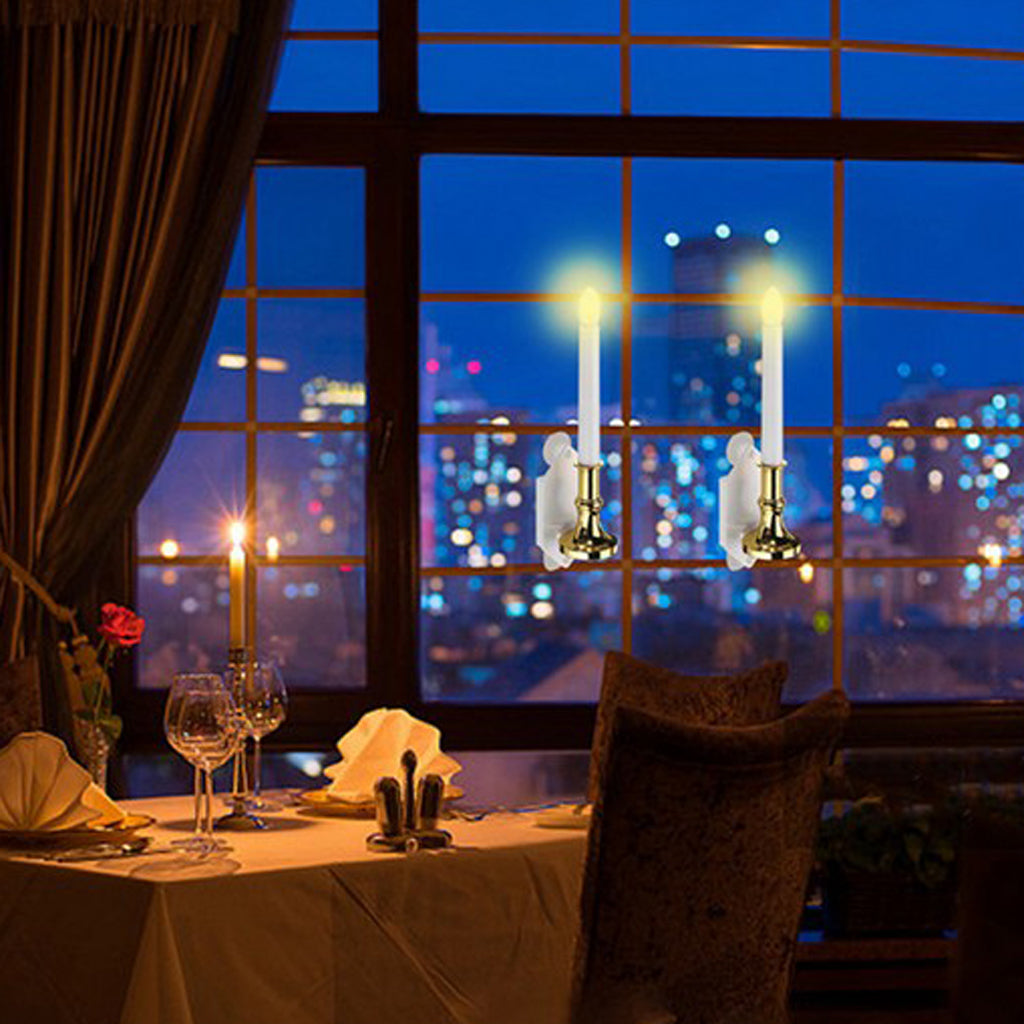 LED Solar Window Candle Light Wall Home Romantic Decor with Suction Cups