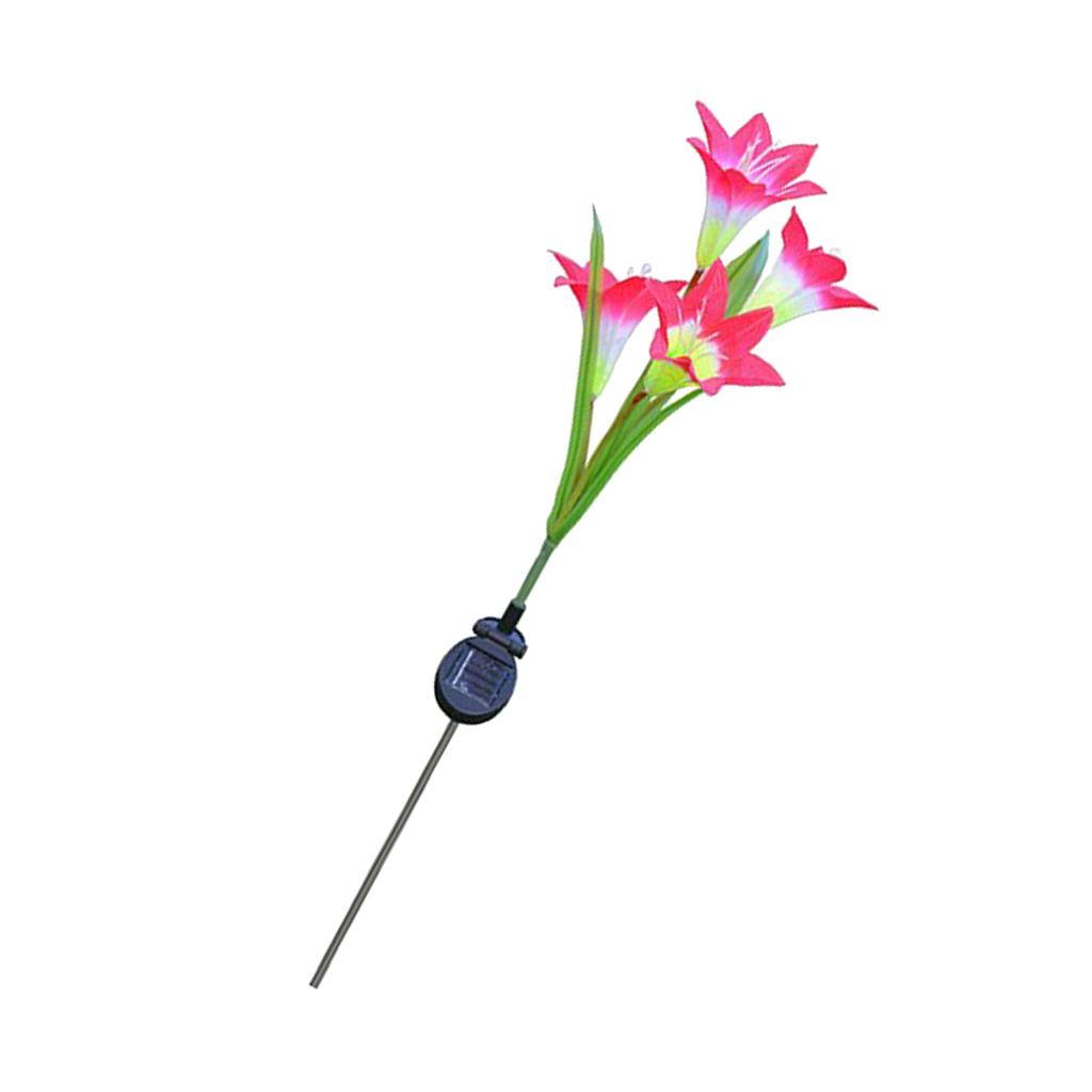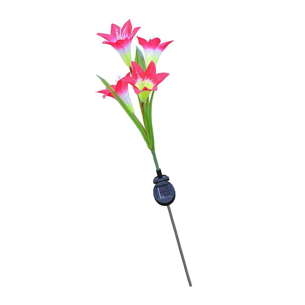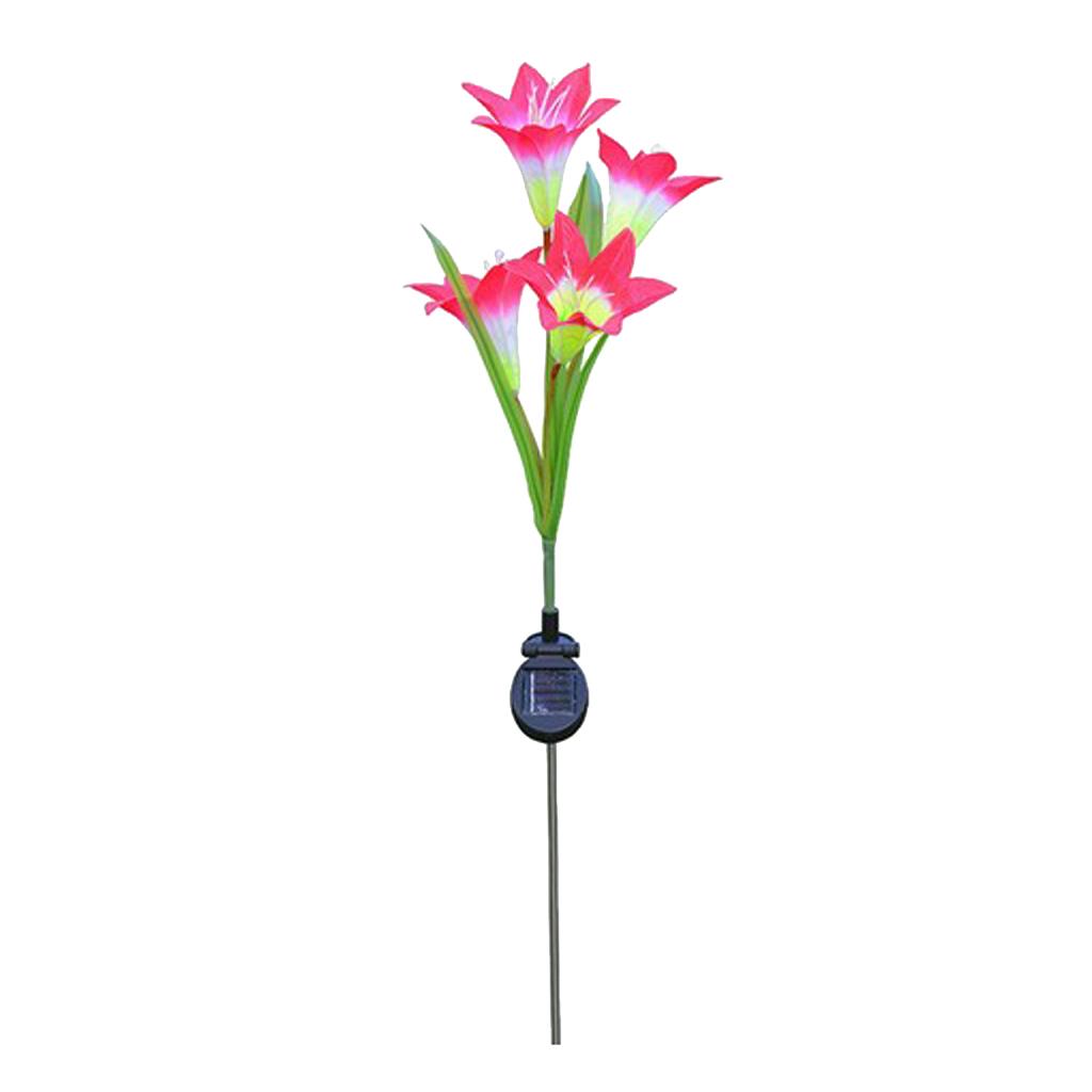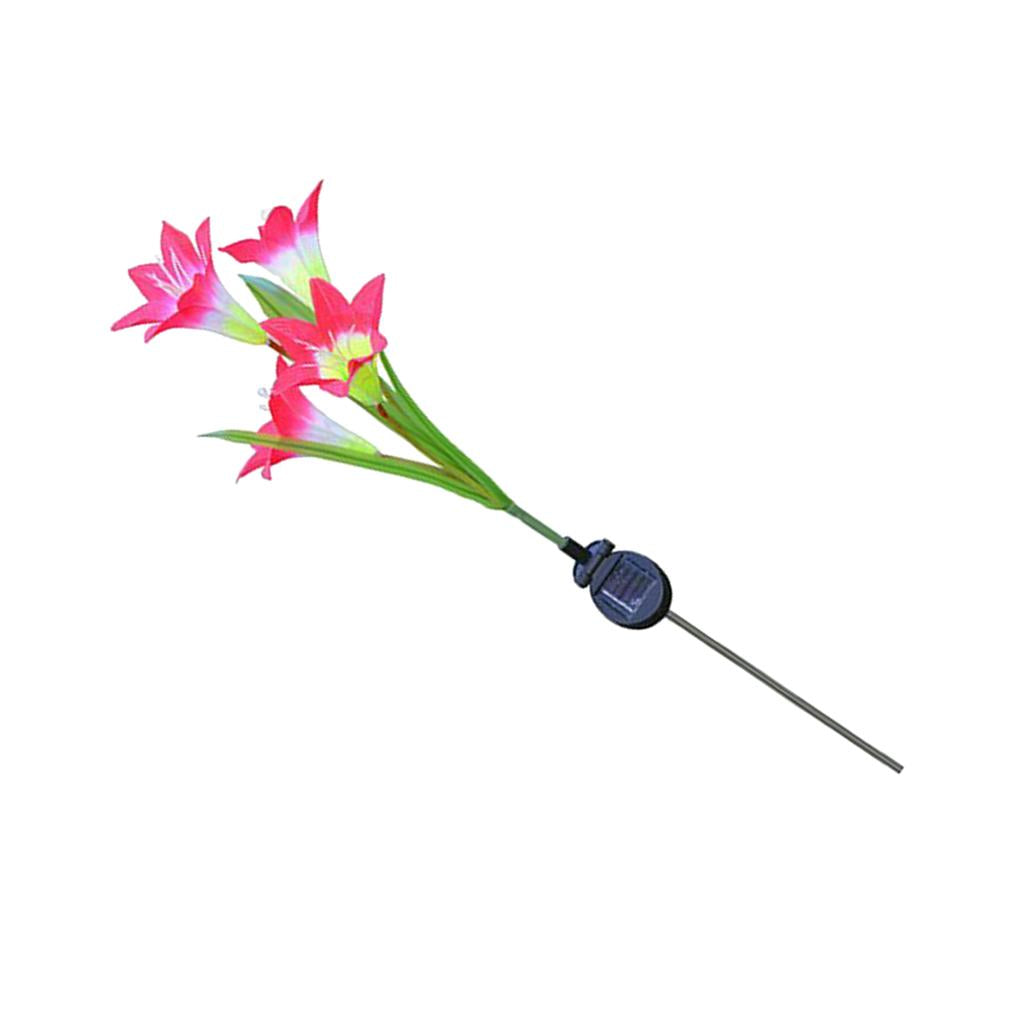 Outdoor Solar Powered Lily Flower 4 LED Light Garden Yard Decor Deep Pink