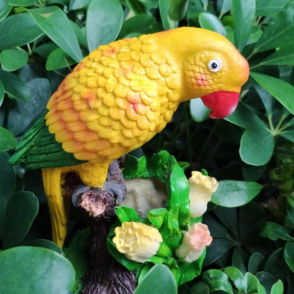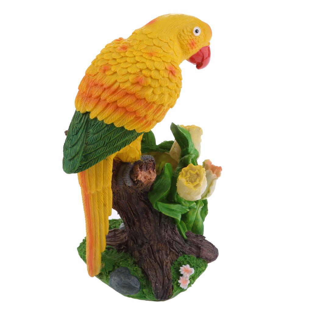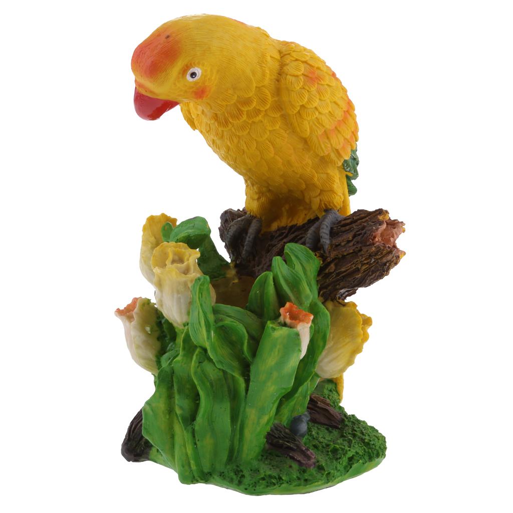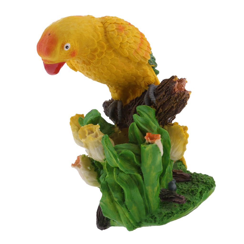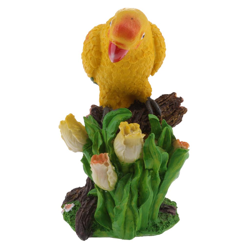 Parrot Figurines Statues Mini Resin Craft Miniature Decor Garden Art Yellow