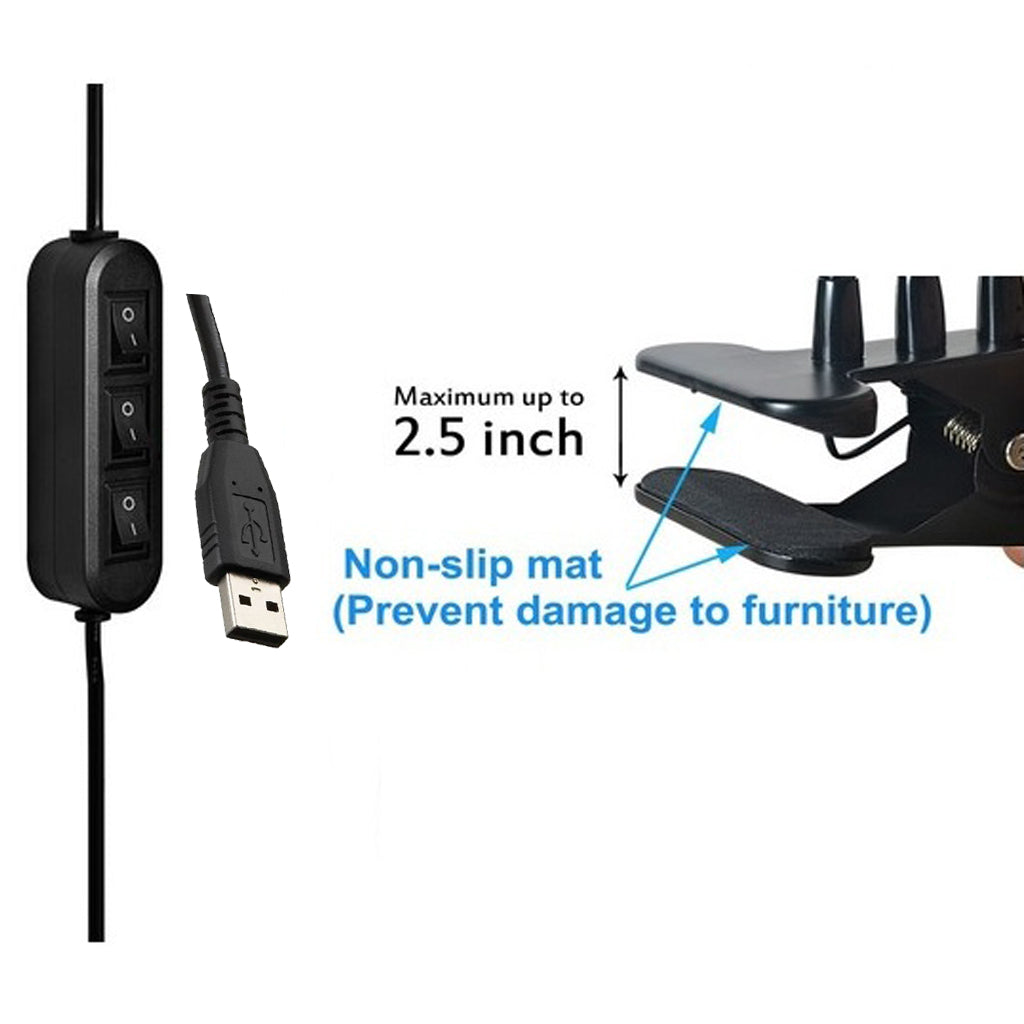 5V USB connector and stronger clip design apply to any place at your home or office.