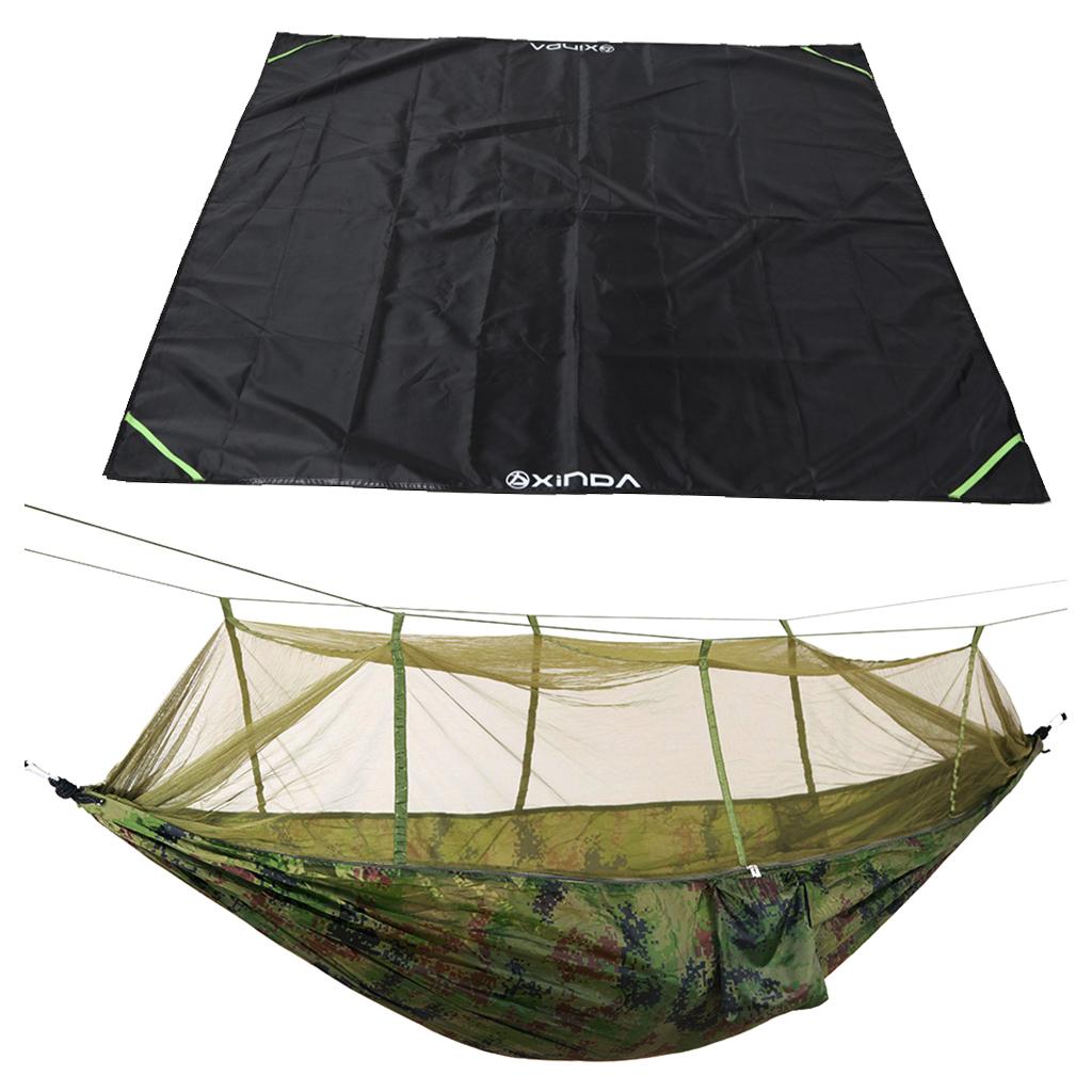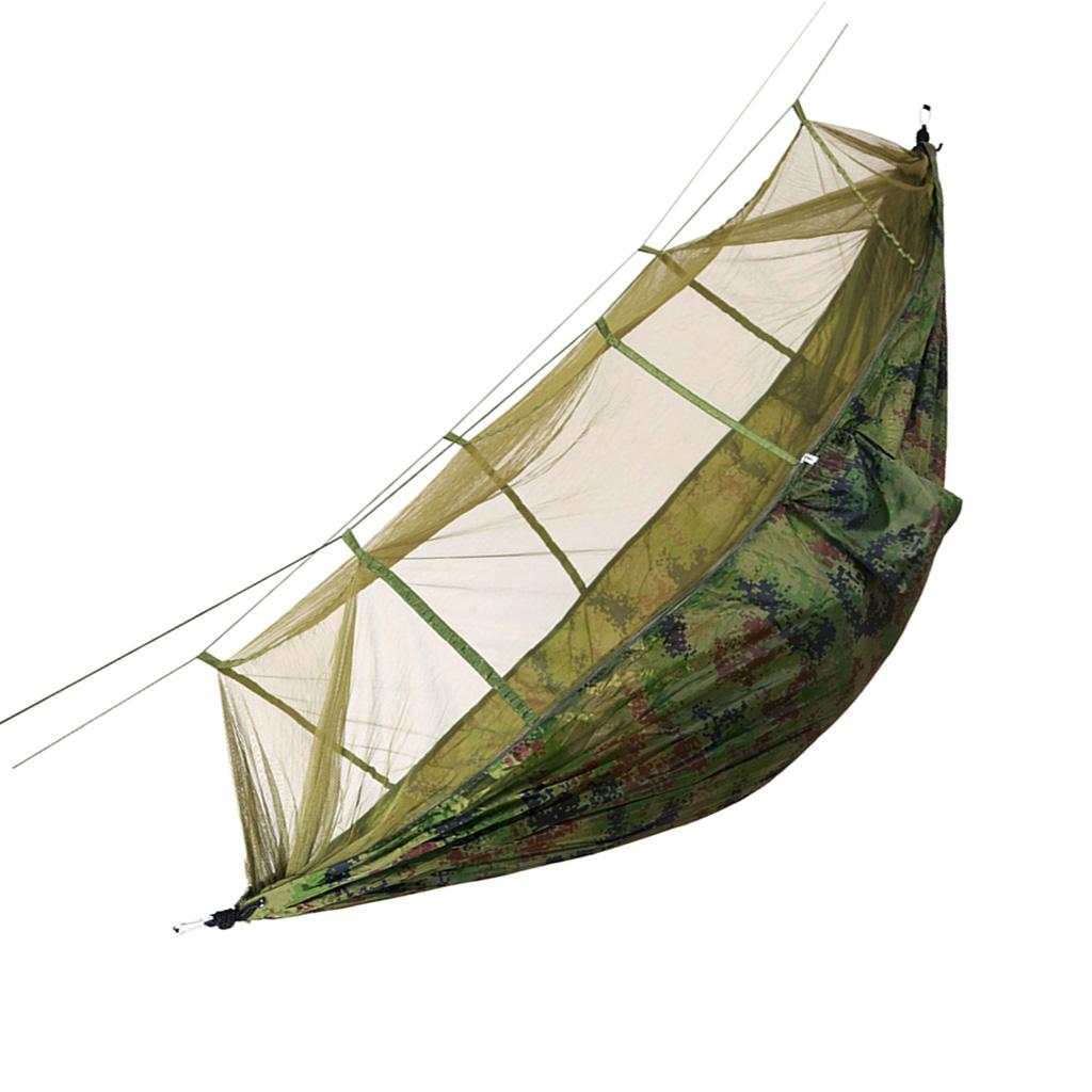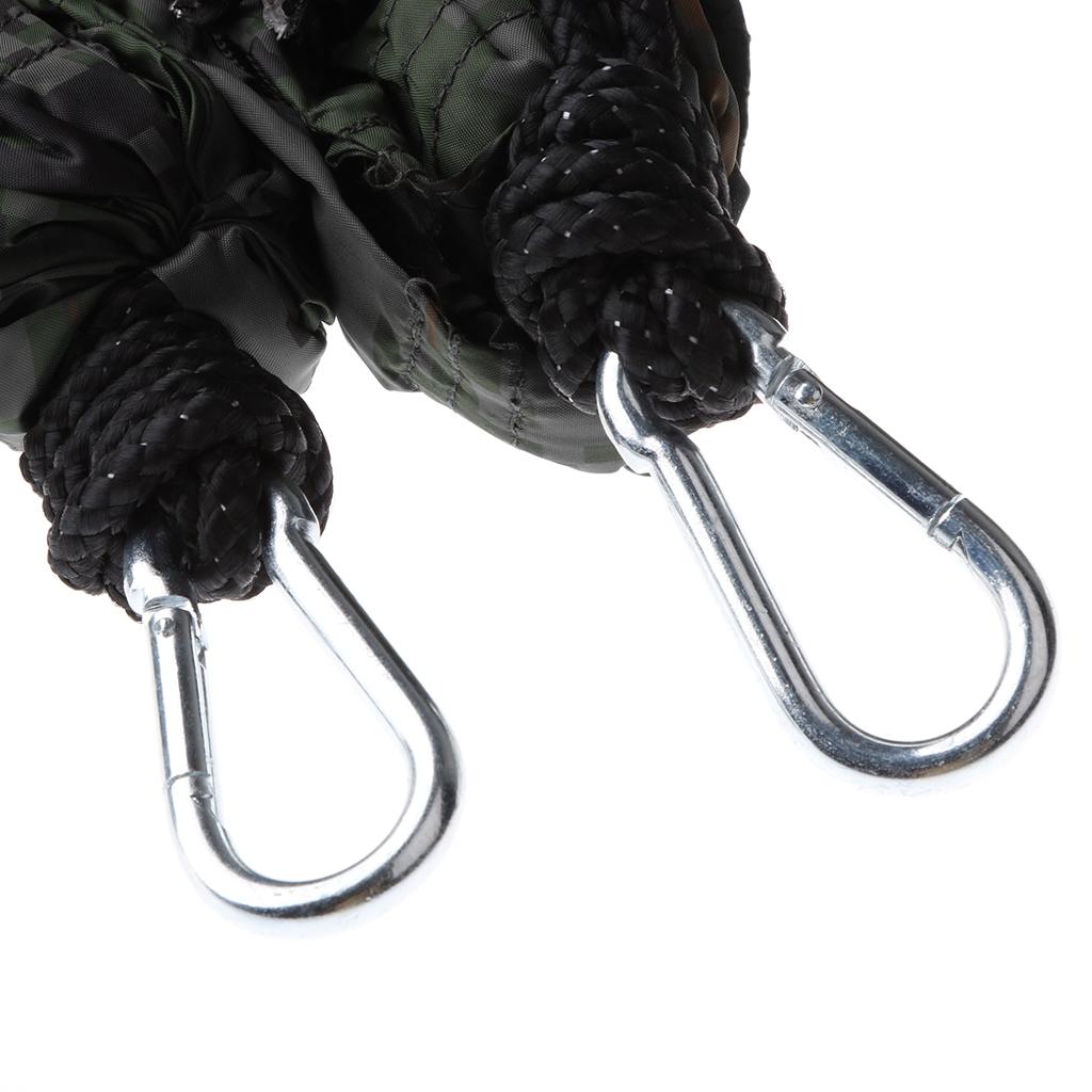 Double sided zipper, with carabiner hooks, webbing tree straps and mosquito net rope, easy to operate