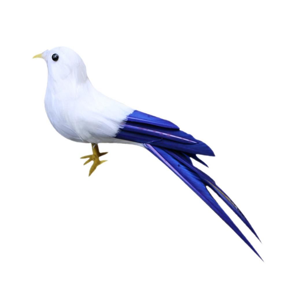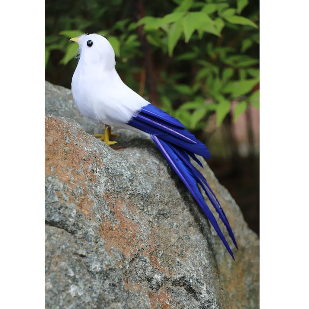 Realistic Artificial Feather Animal Bird Garden Figurine Decor Blue Tail