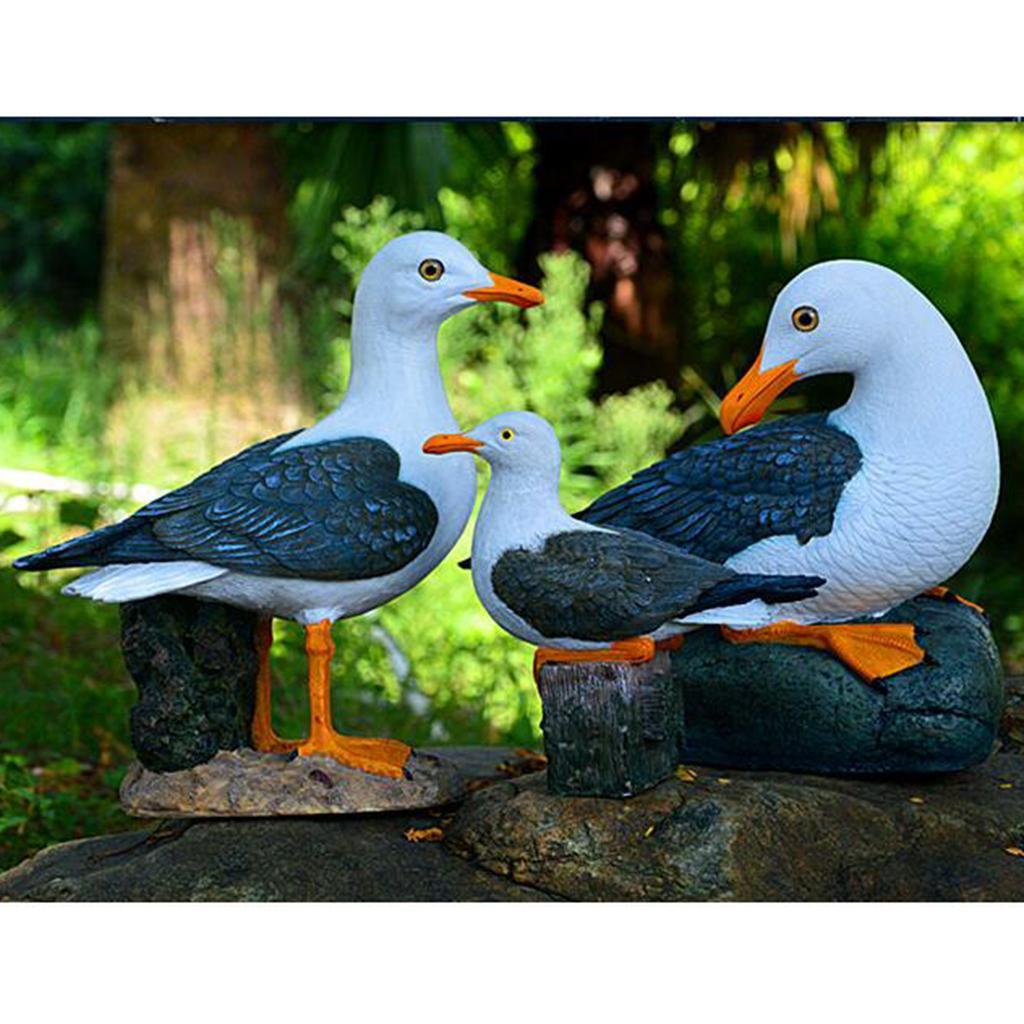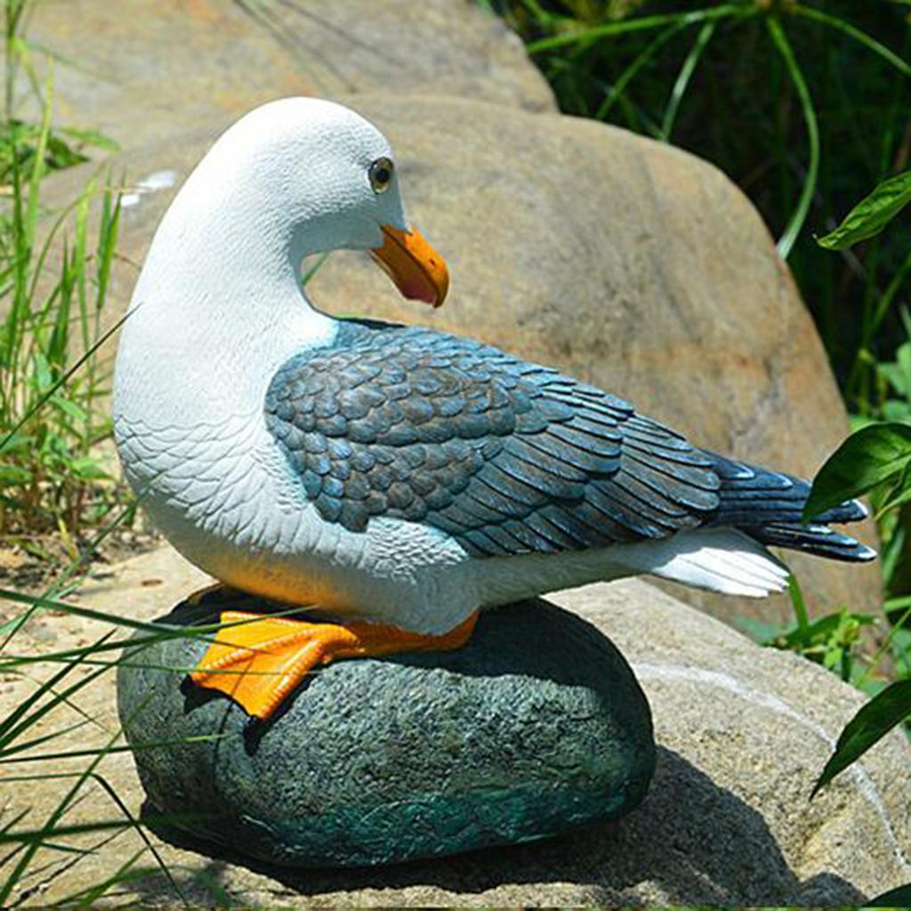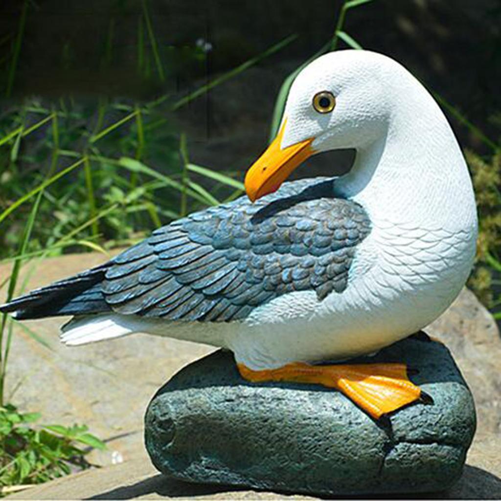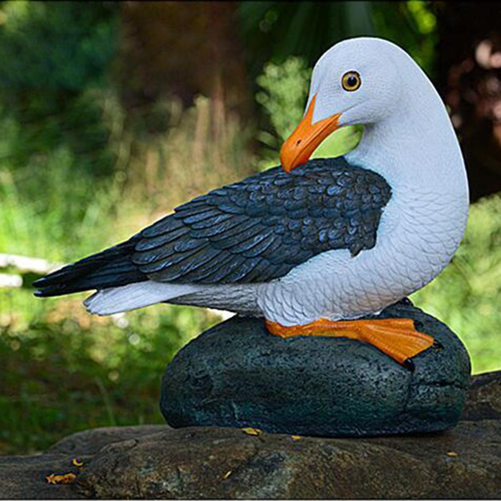 Resin Craft Seagull Statue Garden Lawn Ornament Animal Sculpture Sitting
