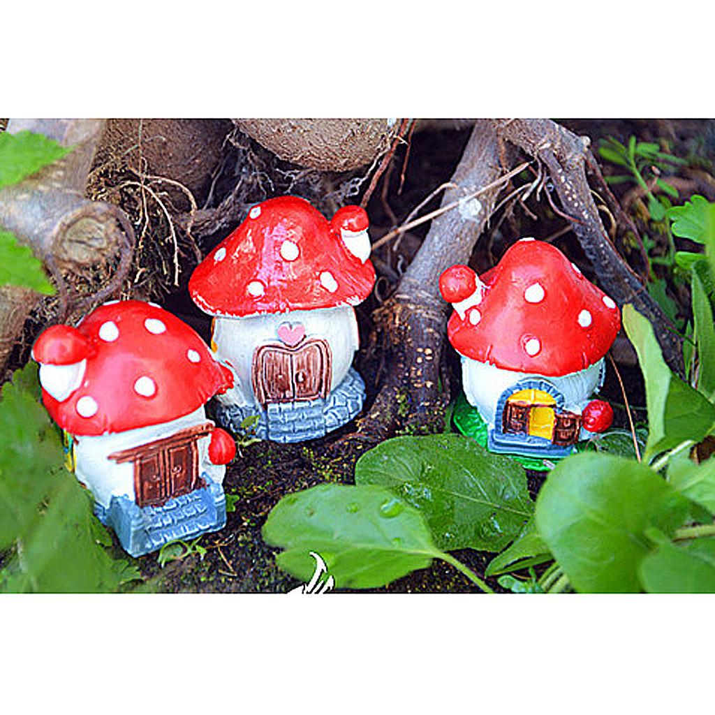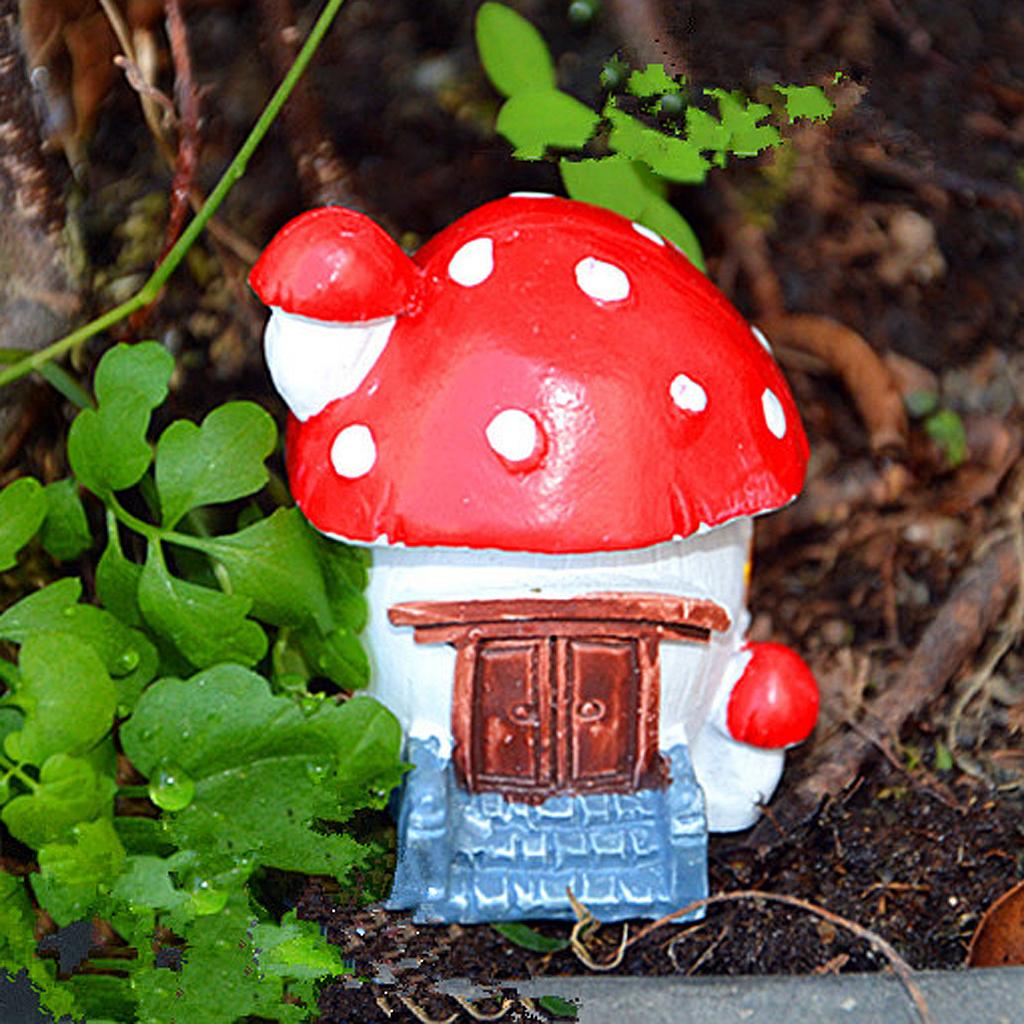 Resin Mushroom House Fairy Garden Ornament DIY Miniature Home Decor Red A