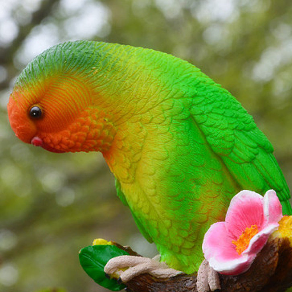 True to nature resin bird ornament, large parrot, budgerigar, extremely vivid and highly detailed garden decoration, realistic model toy and teaching prop.
