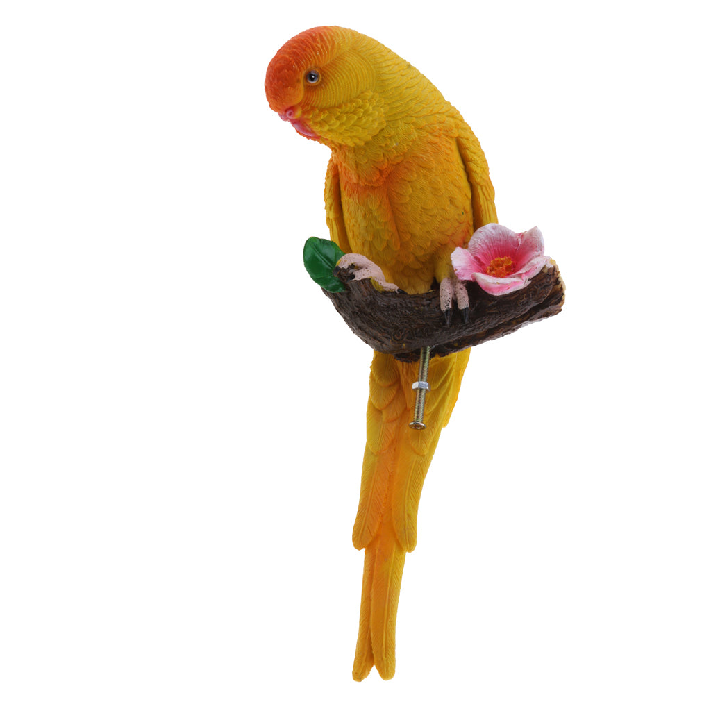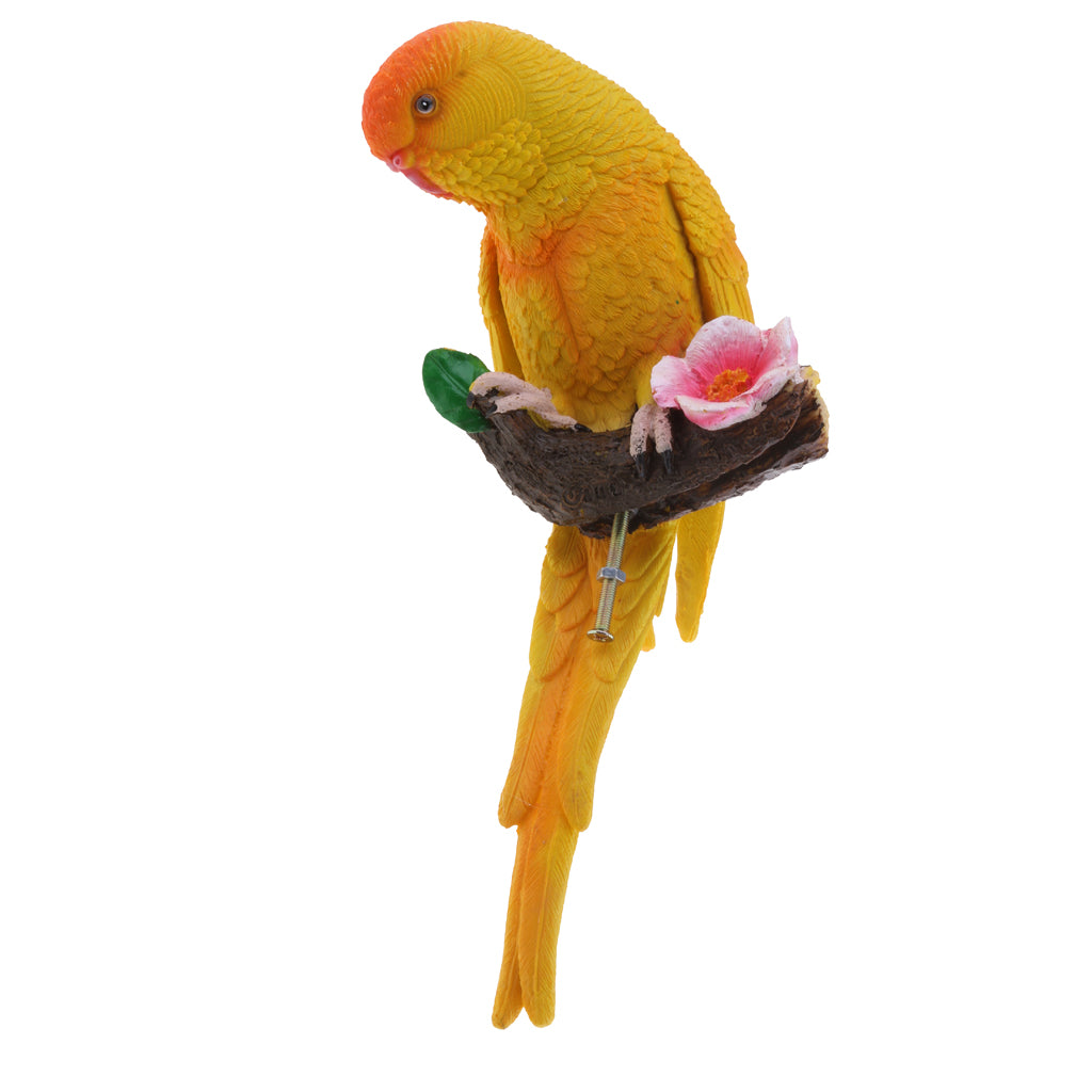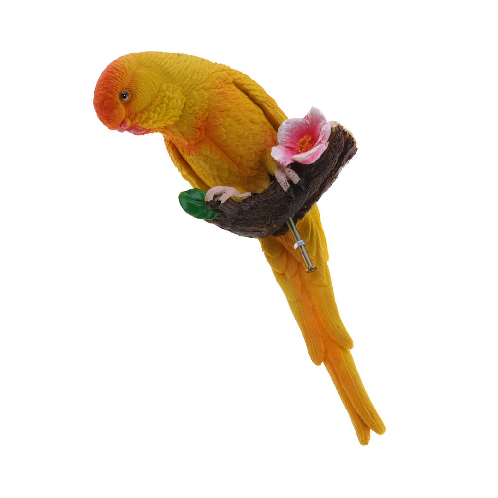Resin Parrot Budgerigar Bird Animal Ornament Hanging Decor Yellow