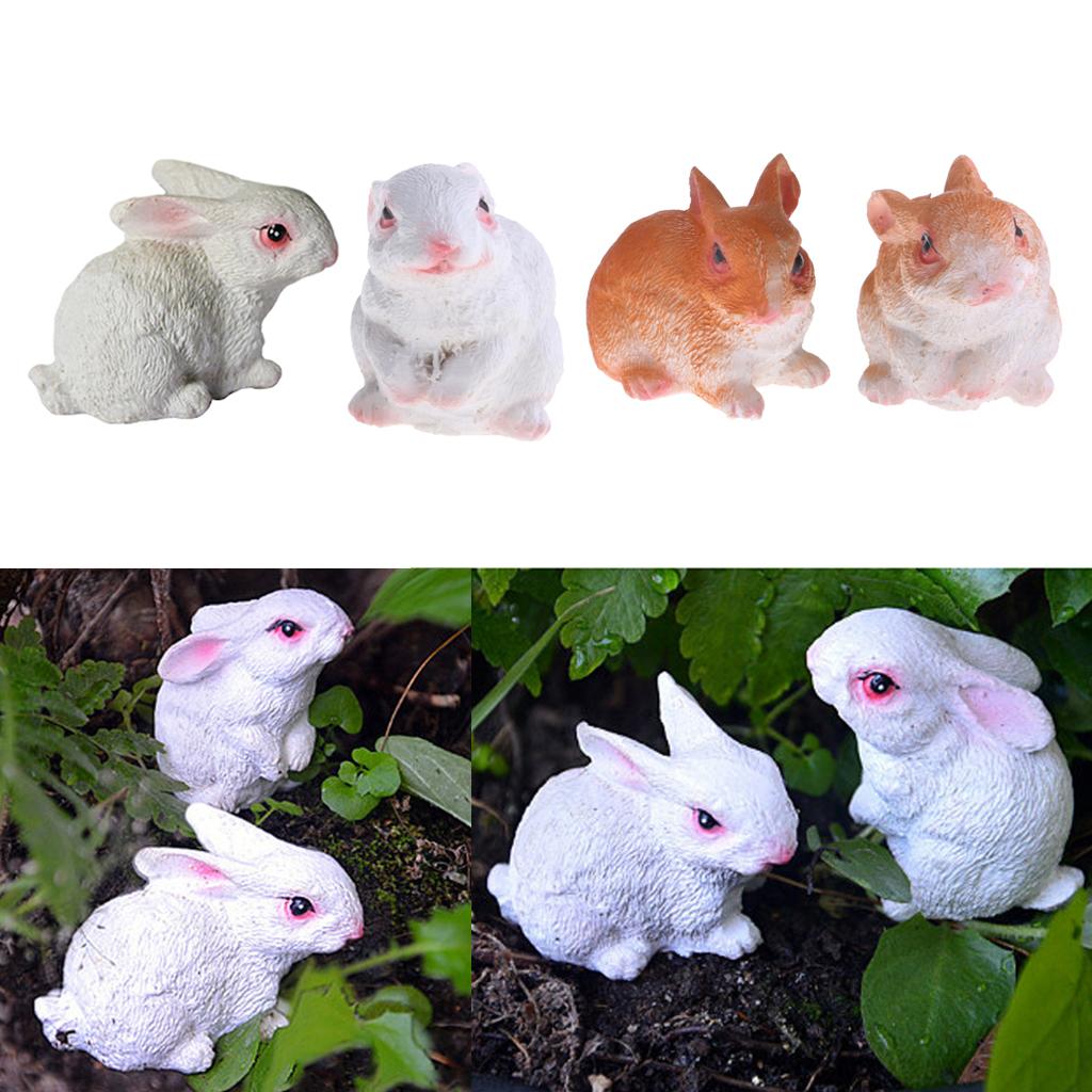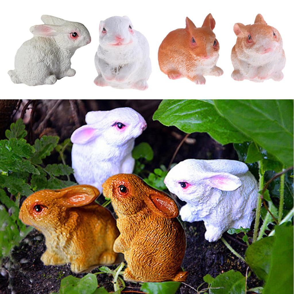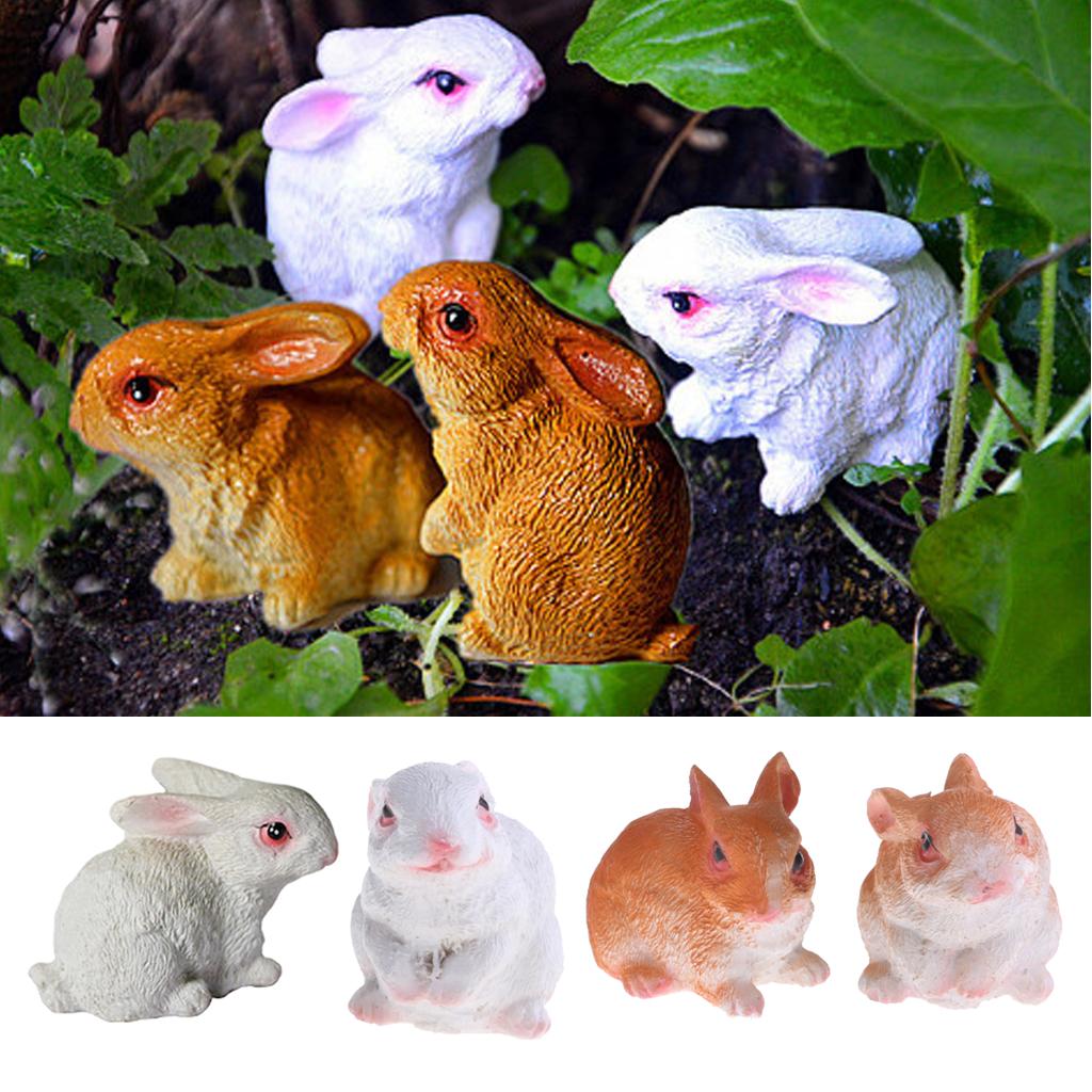 Resin Rabbit Fairy Garden Ornament Miniature Craft Home Decor White Lying