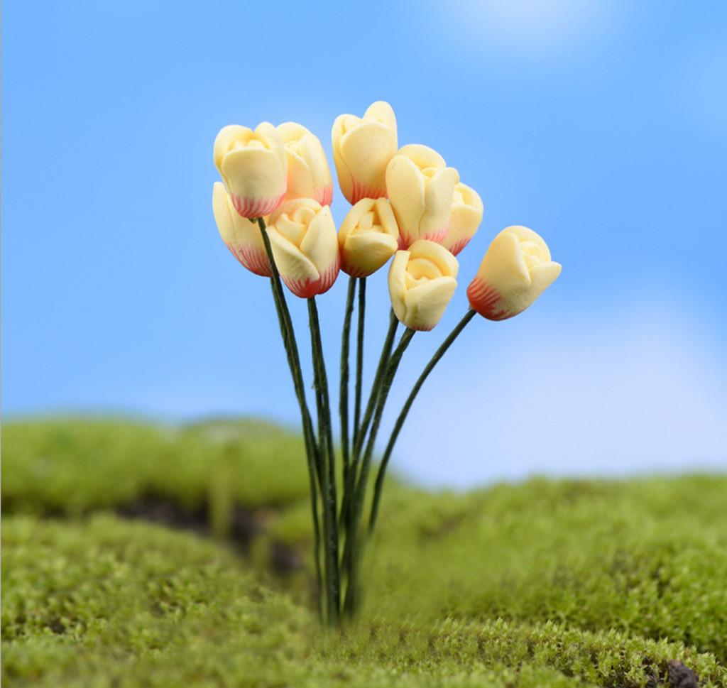 Resin Tulips Moss Landscape Ornaments Accessories Garden Decor 10pcs Yellow