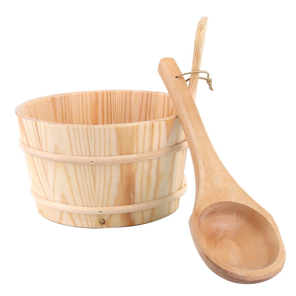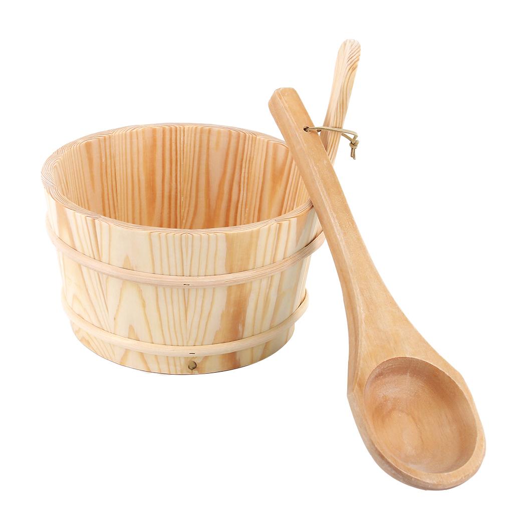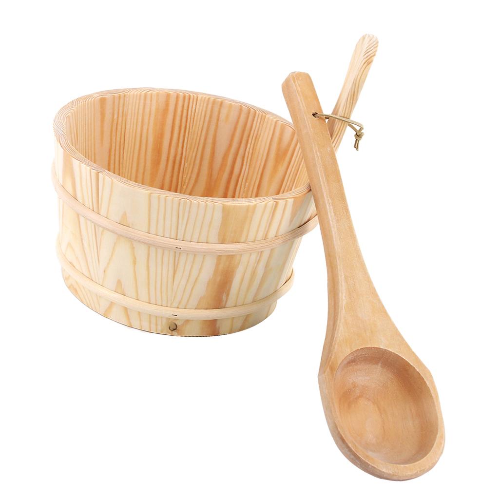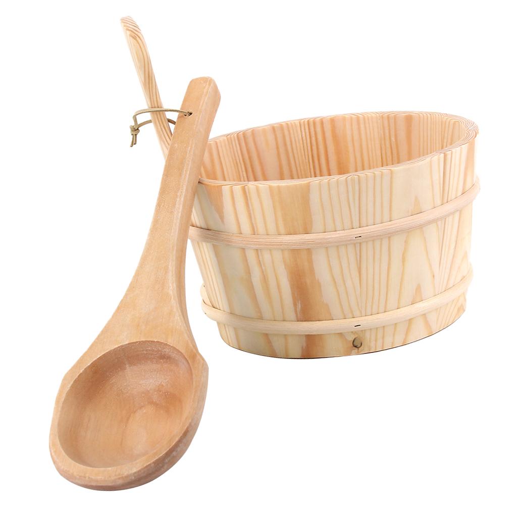 Sauna Bucket And Ladle Bathroom Natural Wooden Bucket Sauna SPA Bath Parts With Smooth Surface, Delicate Design