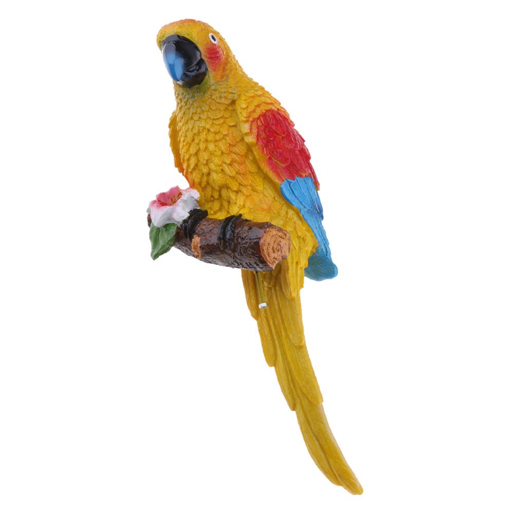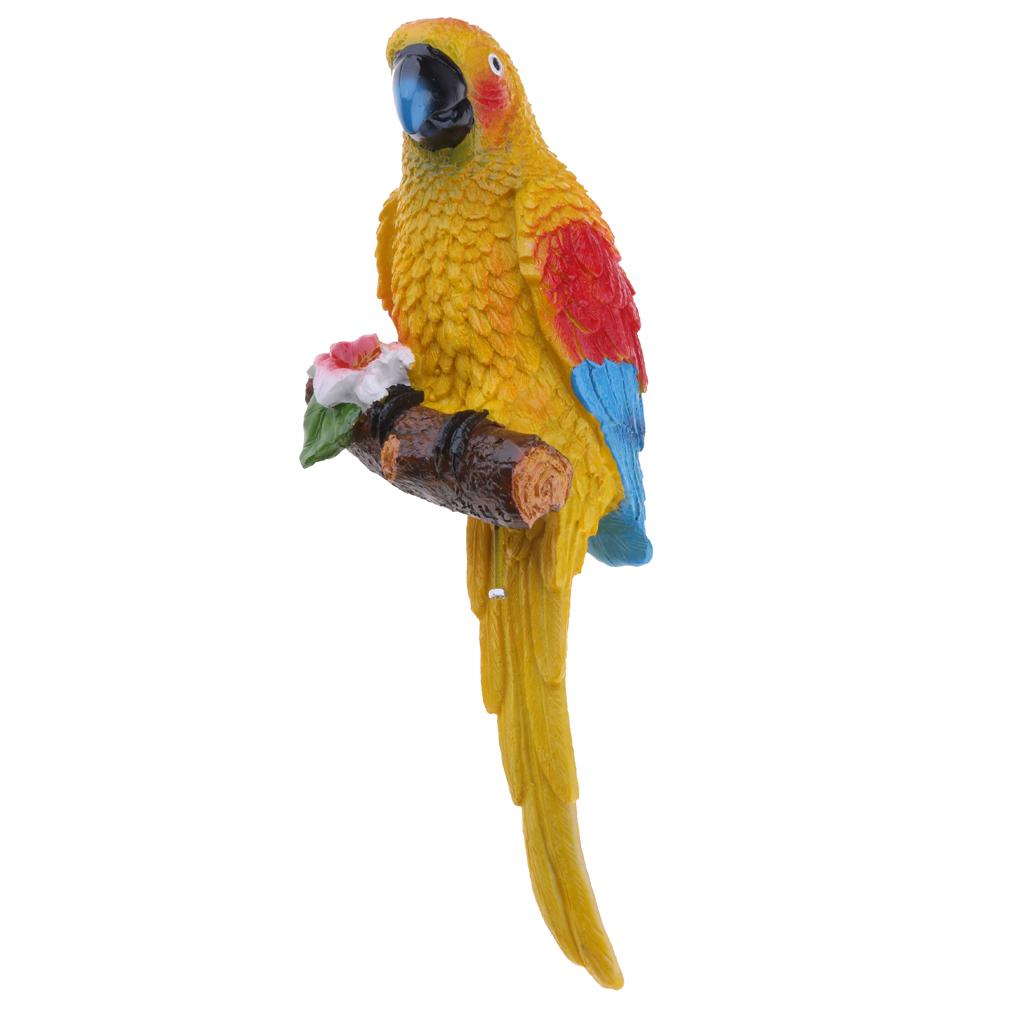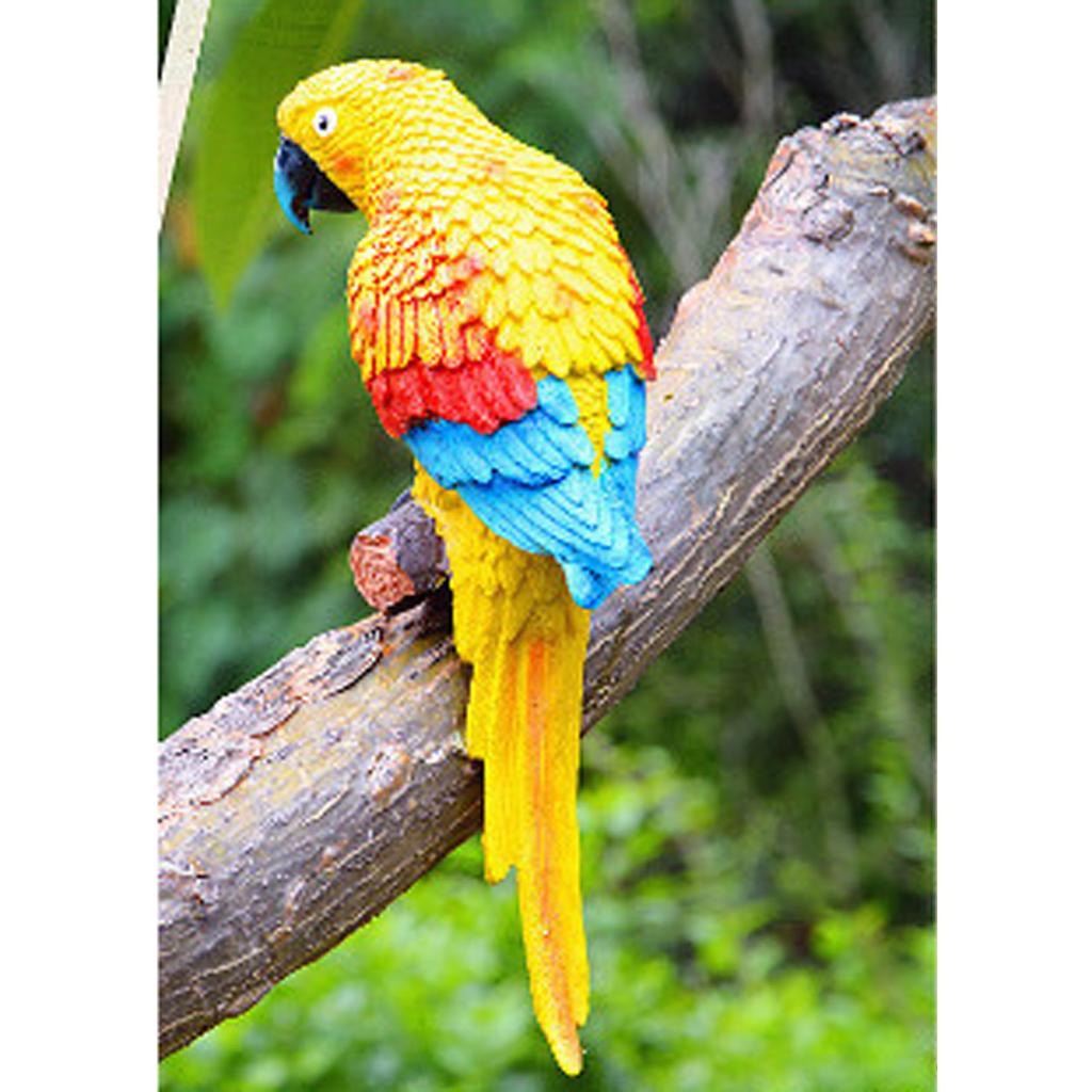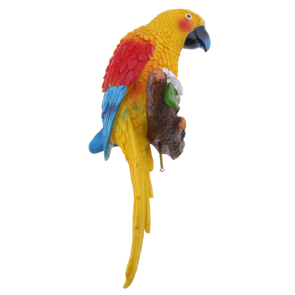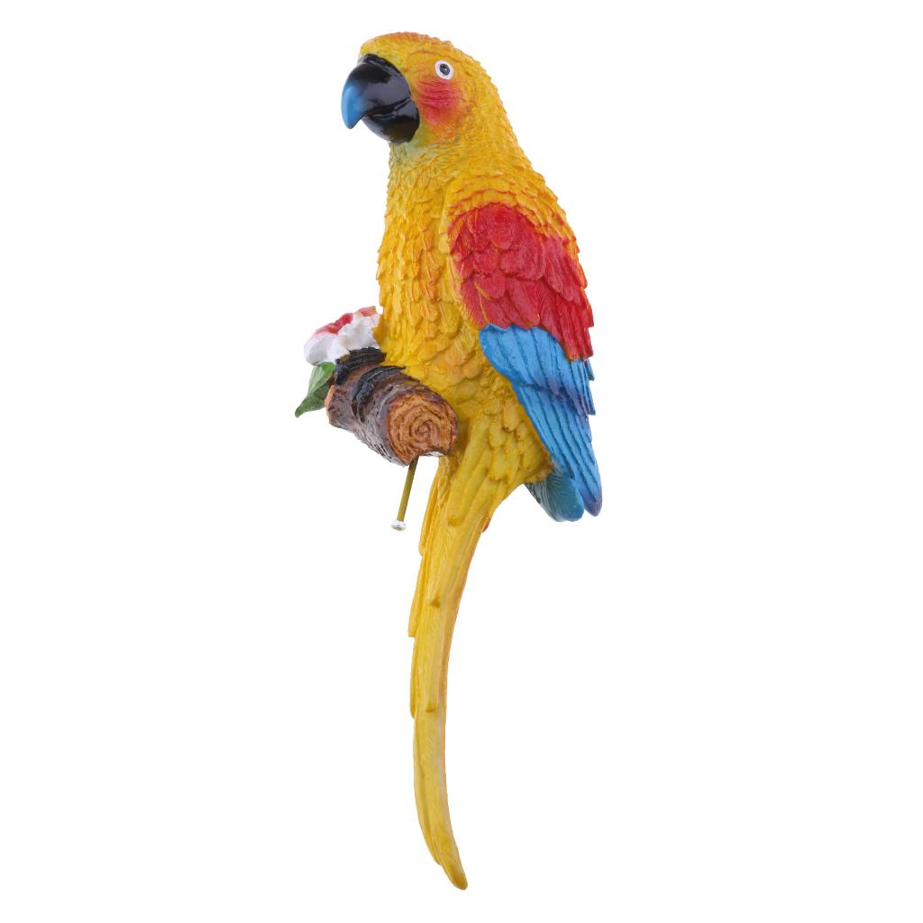 Simulation Parrot Birds Sculpture Wall Hanging Cute Macaw Resin Craft Yellow