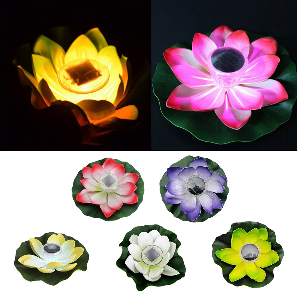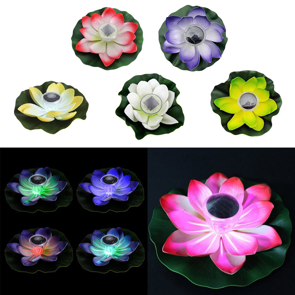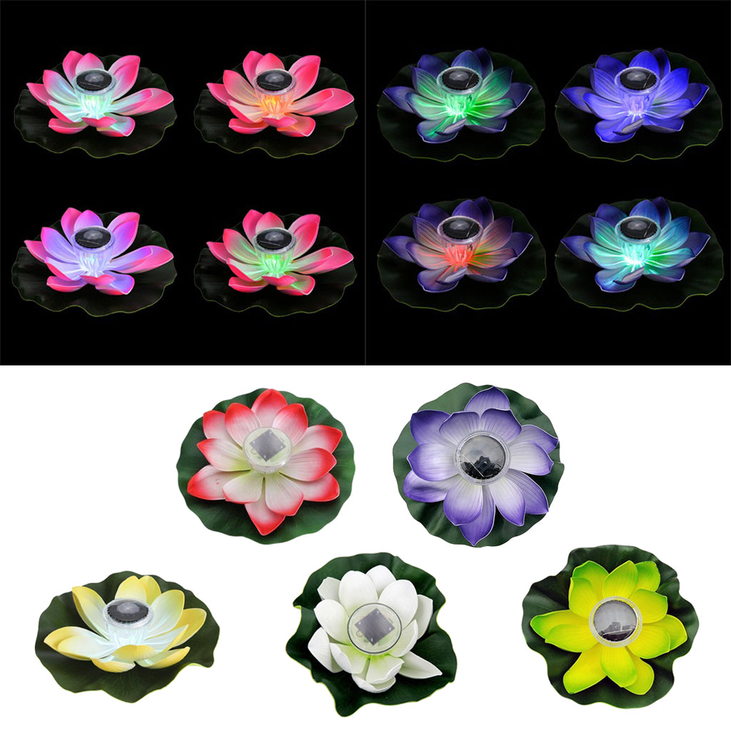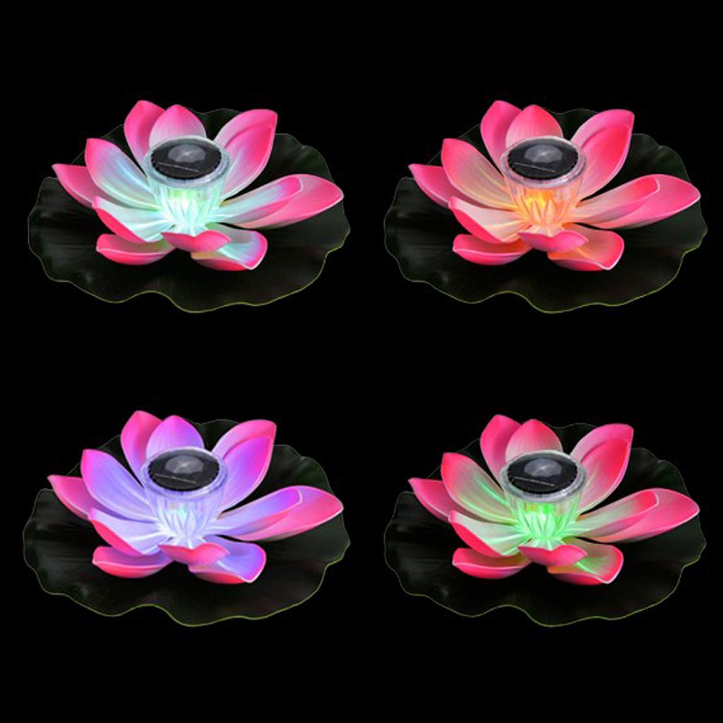 Solar powered light, 7 color changing LED, with lotus leaves and flowers, water floating ornament