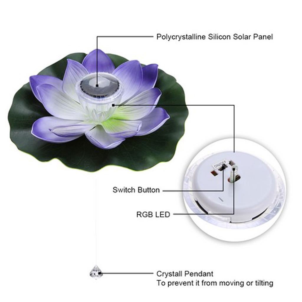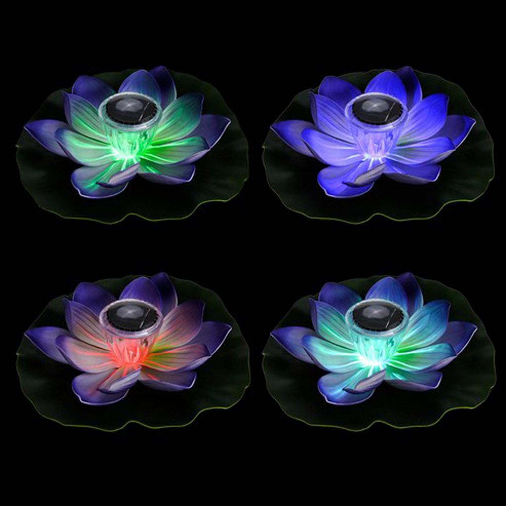 Solar Power LED Floating Lotus Light Night Flower Lantern Lamp Purple Petals