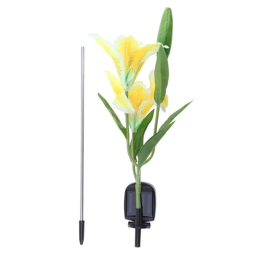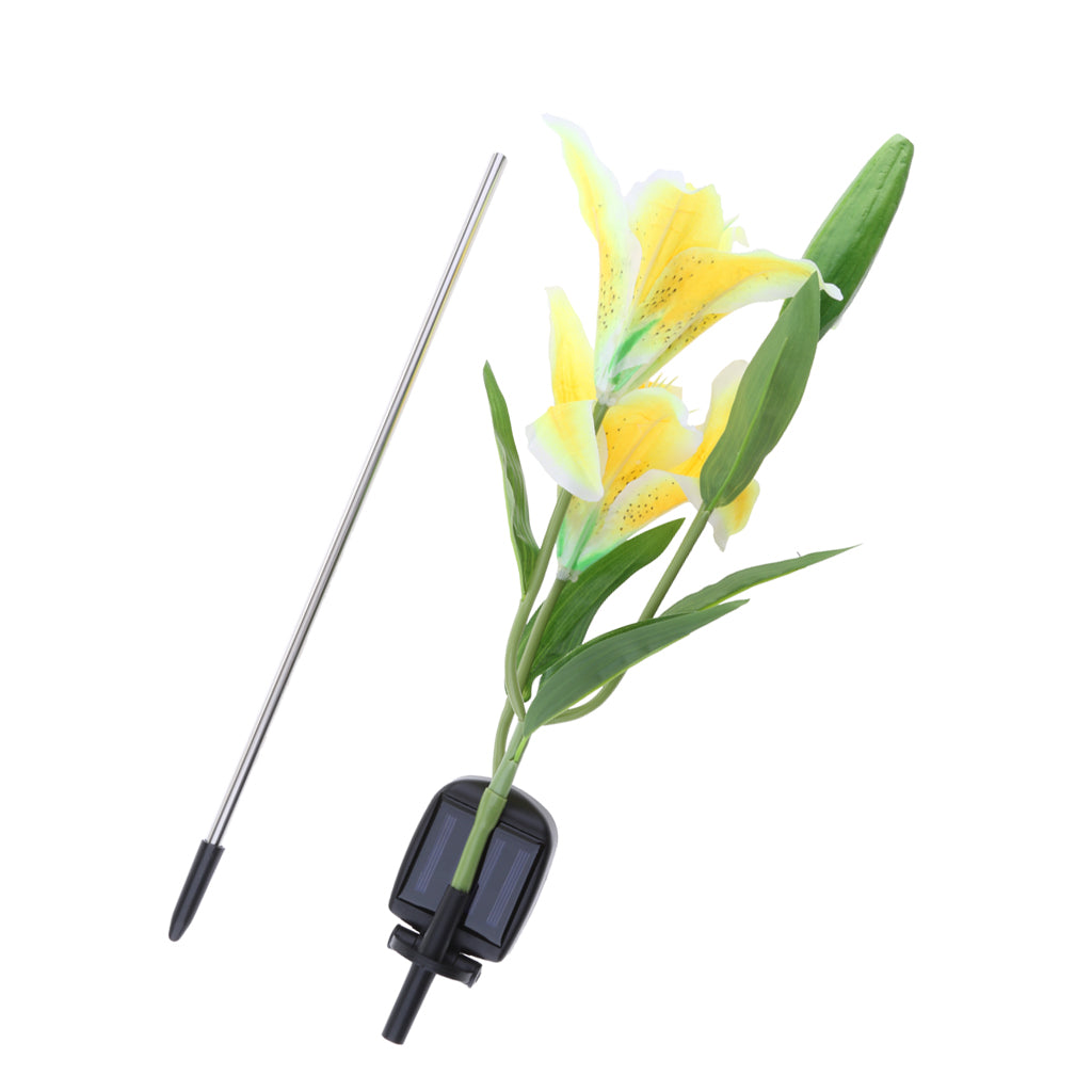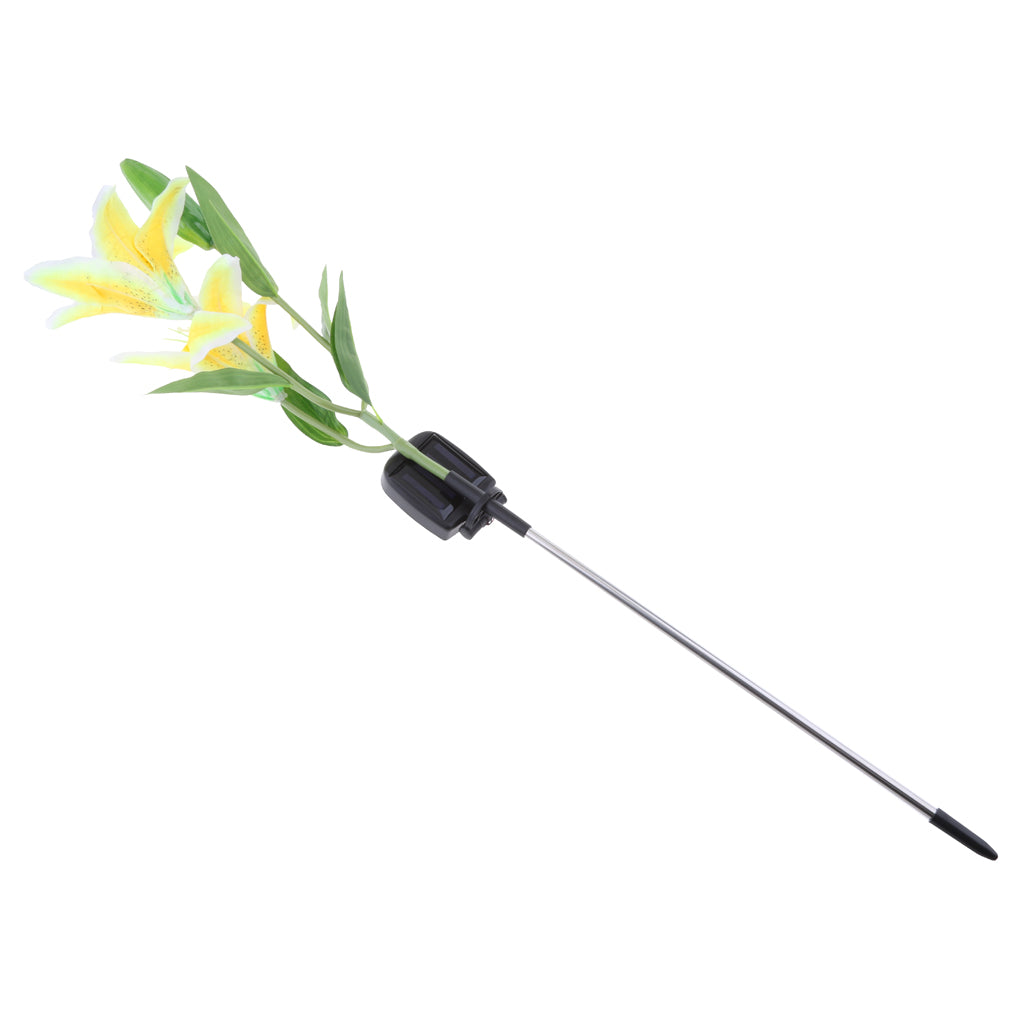 Solar Powered Lights 2LED Lily Flower Outdoor Garden Yard Lamp Decor Yellow