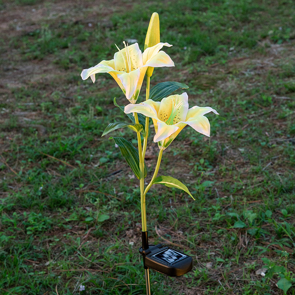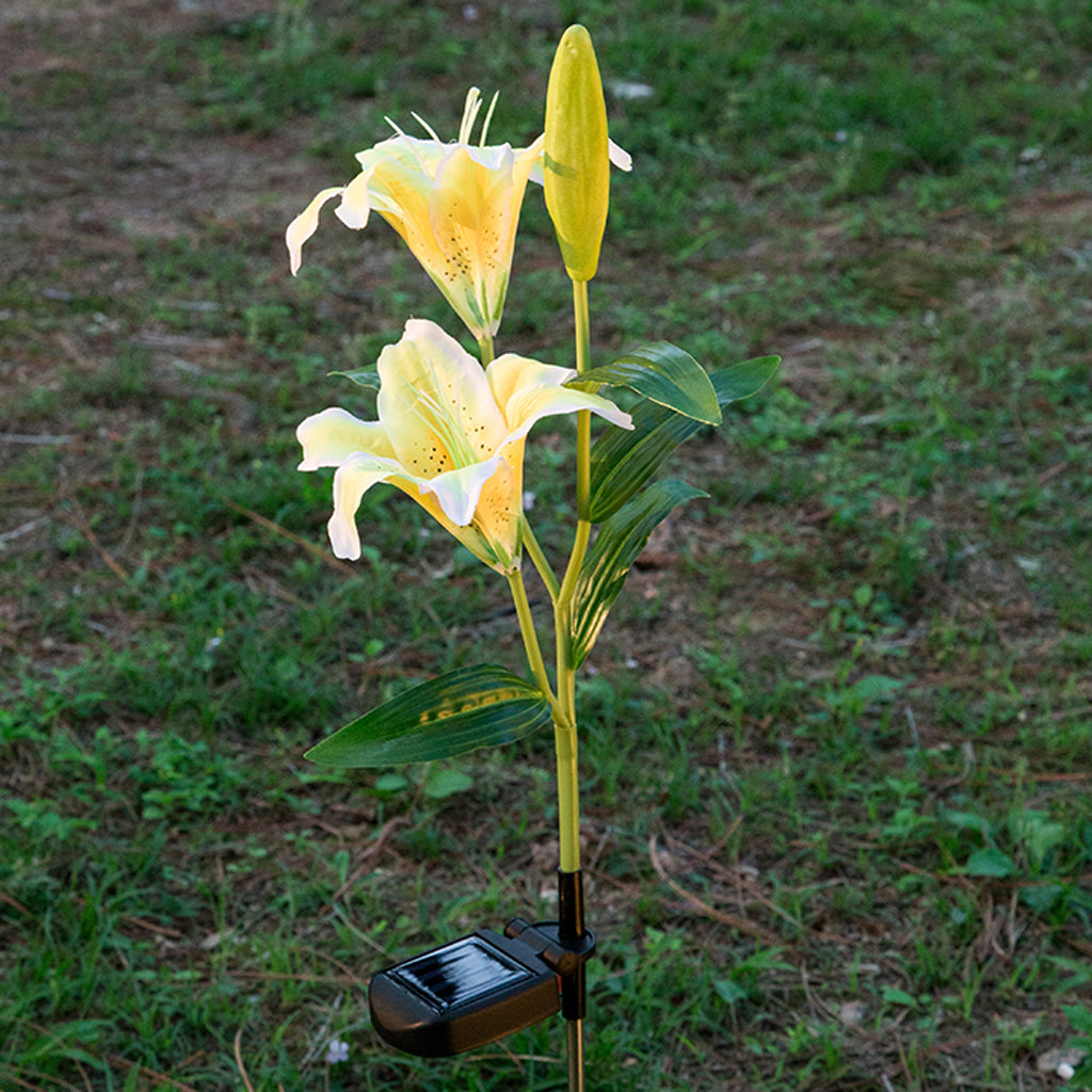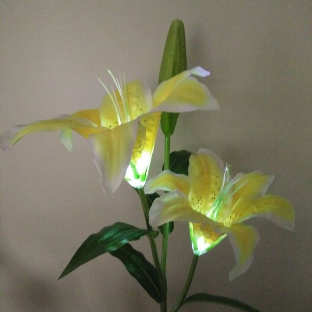 Solar Powered Lights 2LED Lily Flower Outdoor Garden Yard Lamp Decor Yellow