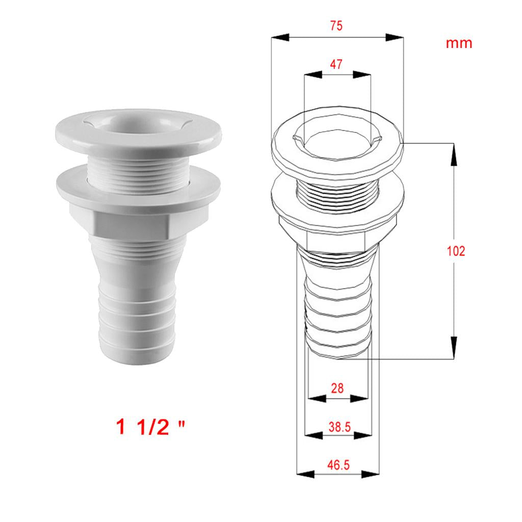 Our Thru-Hulls are meant for installation through the transom and are good for overflow use in livewell installations or as an exhaust port for a bilge pump.