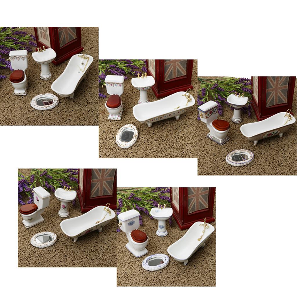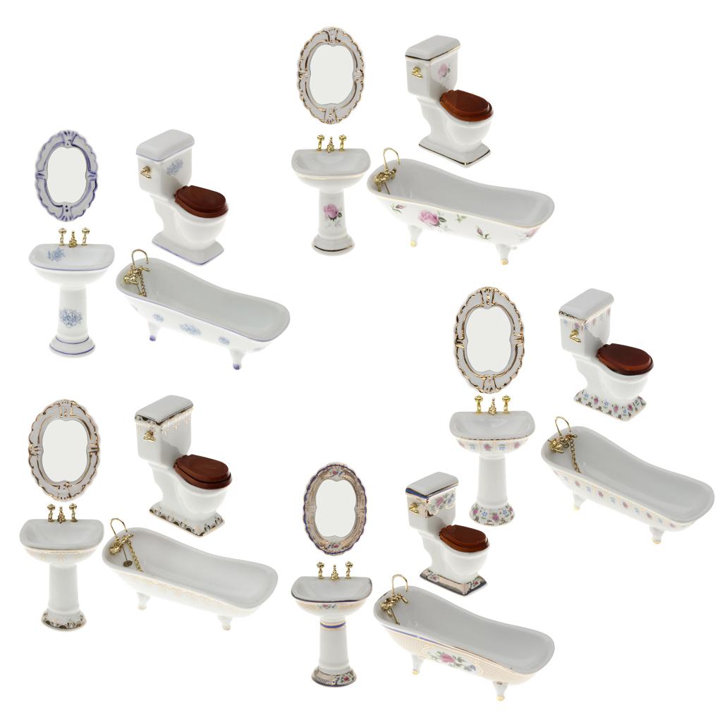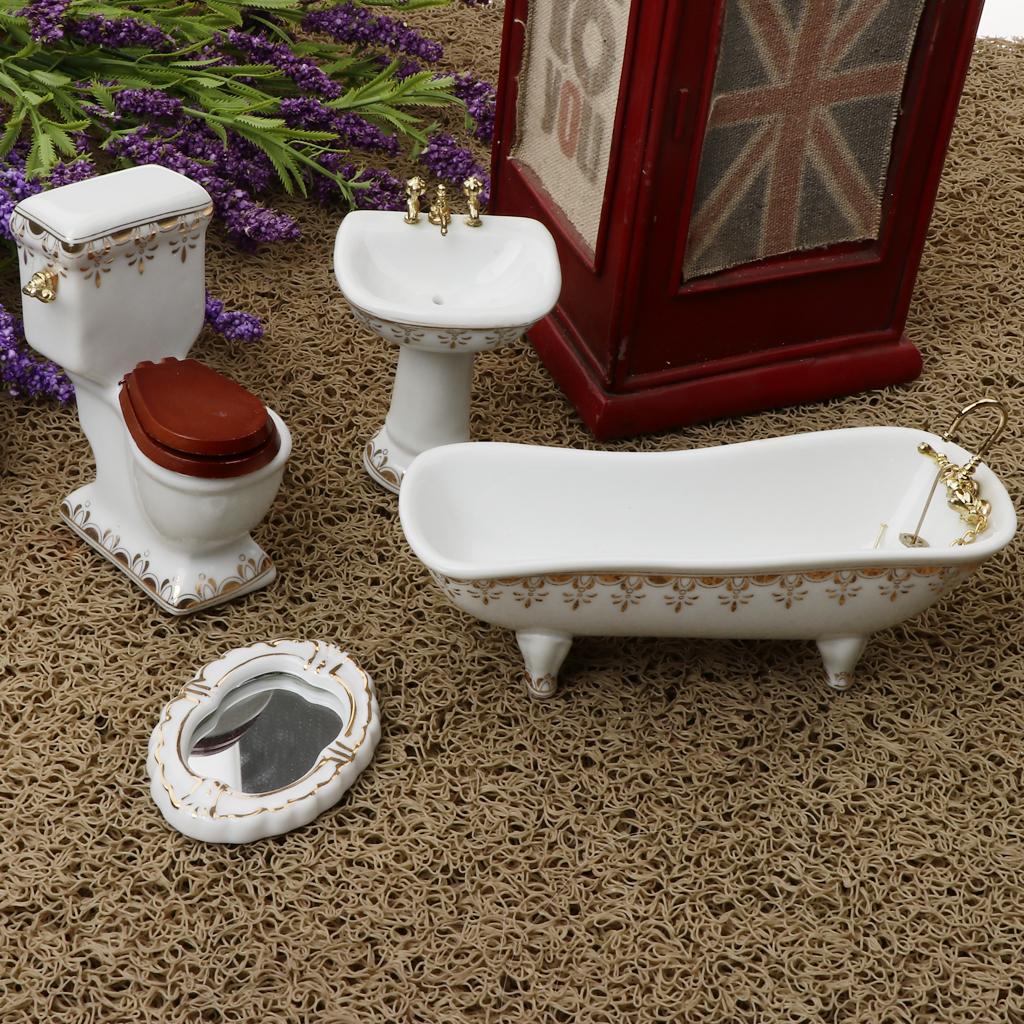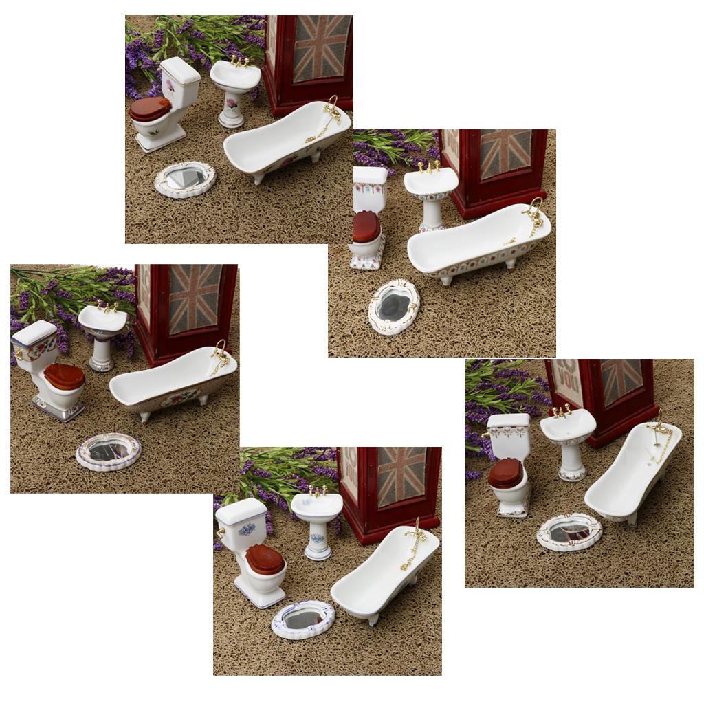 4pcs Delicate dollhouse ceramic bathroom set kits kids DIY making accessories