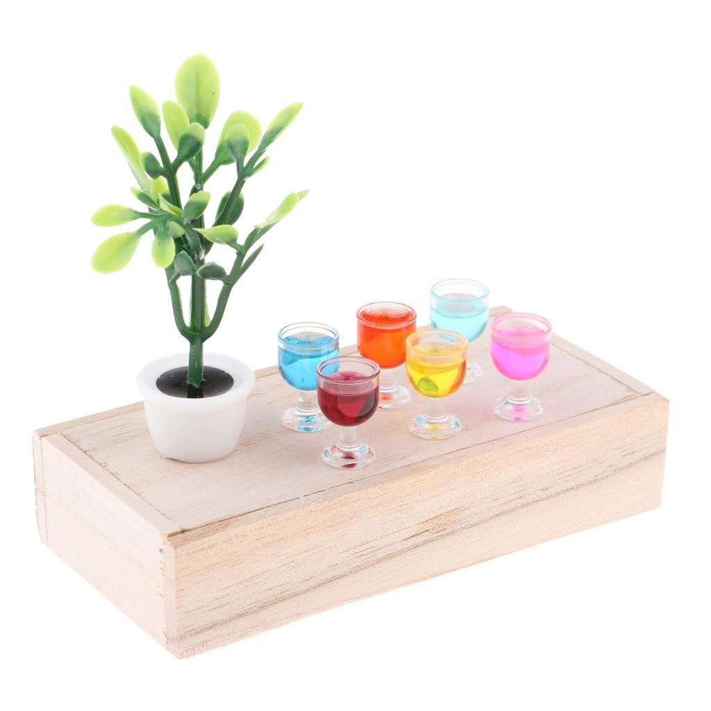 1/12 Dollhouse Mini Wooden Box Green Plant & Round Goblets &Wooden Box Scene Model Decor