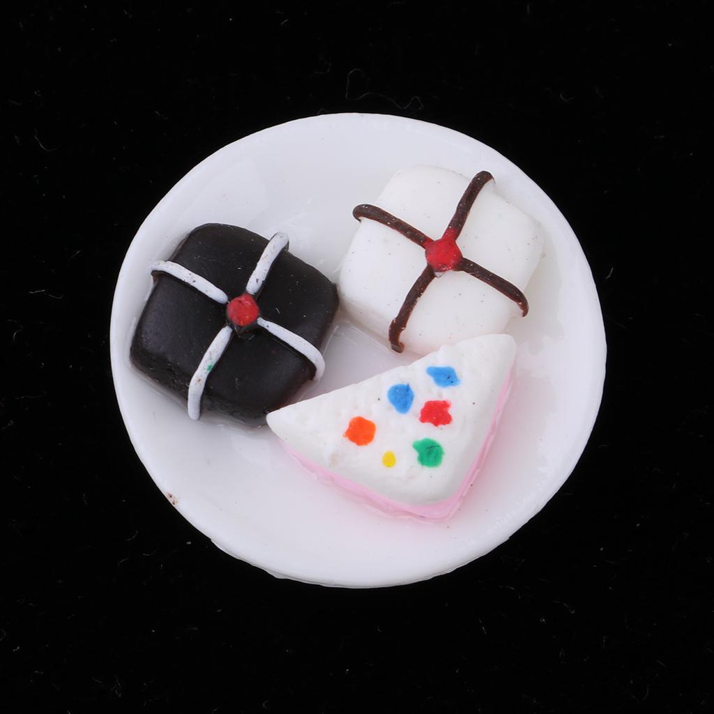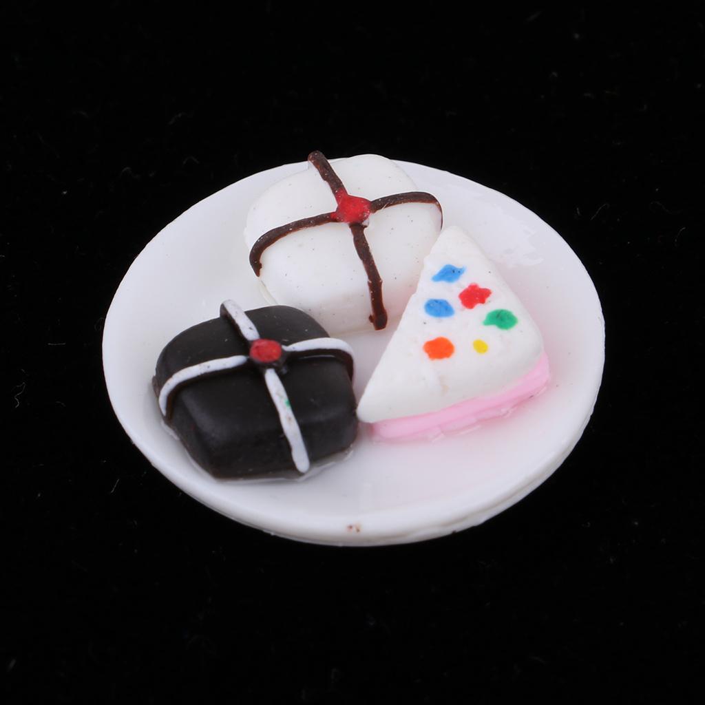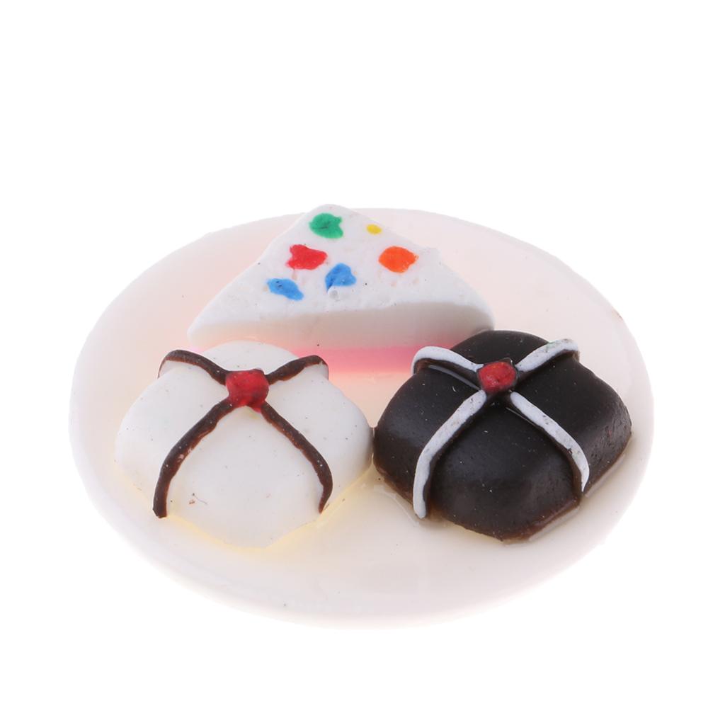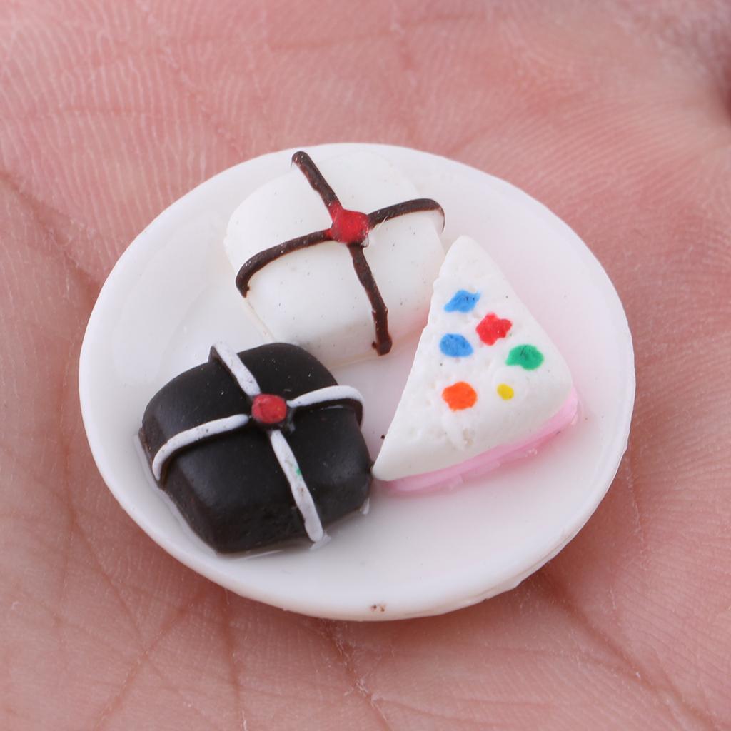 Very cute miniature foods desserts 3 pieces cake and ceramic plate kit - kitchen living room table decoration