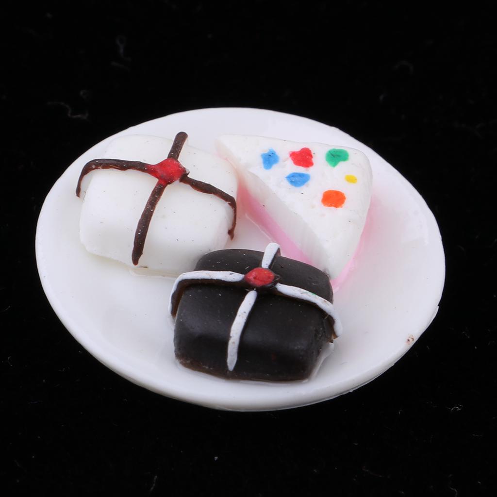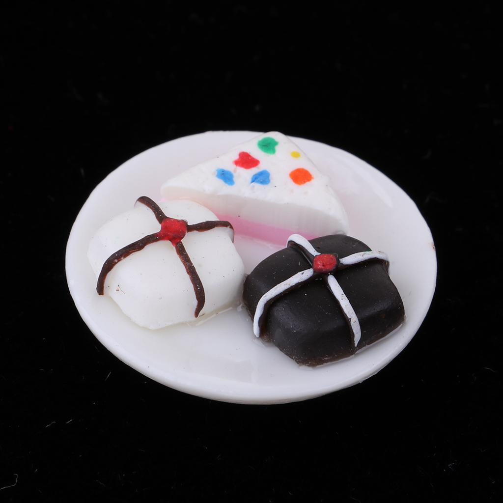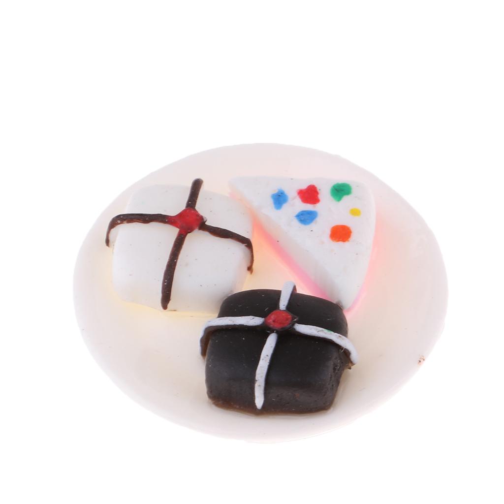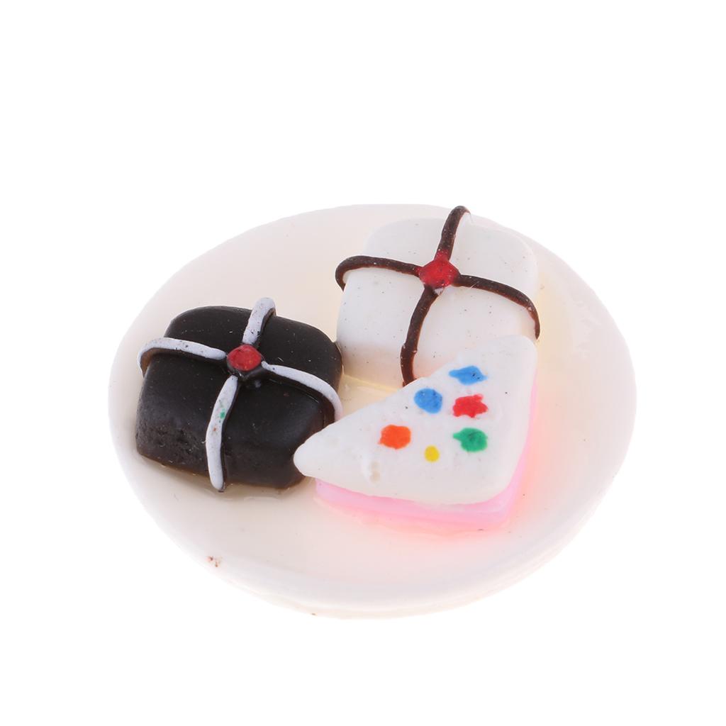 Very cute miniature foods desserts 3 pieces cake and ceramic plate kit - kitchen living room table decoration