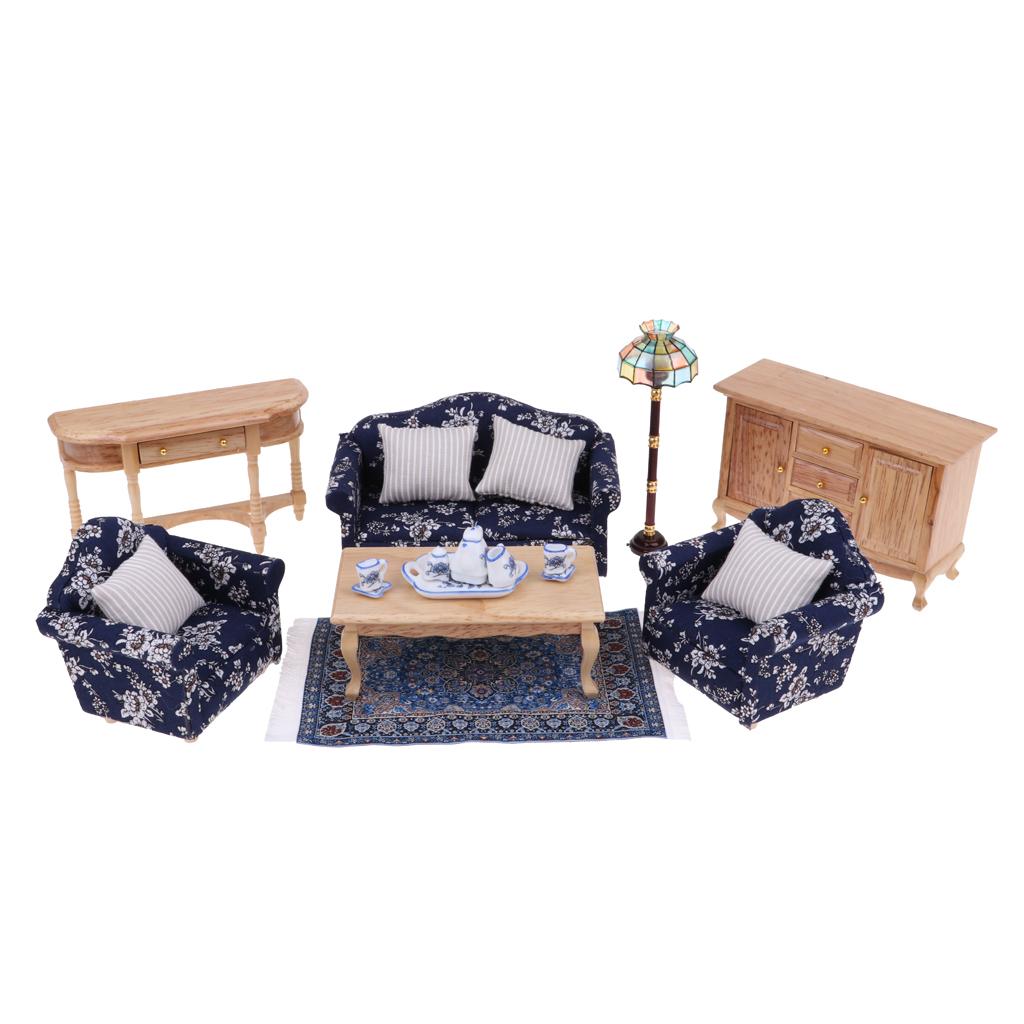 1/12 Dollhouse Miniature Furniture Sofa End Table Cabinet Floor Lamp Tea Set