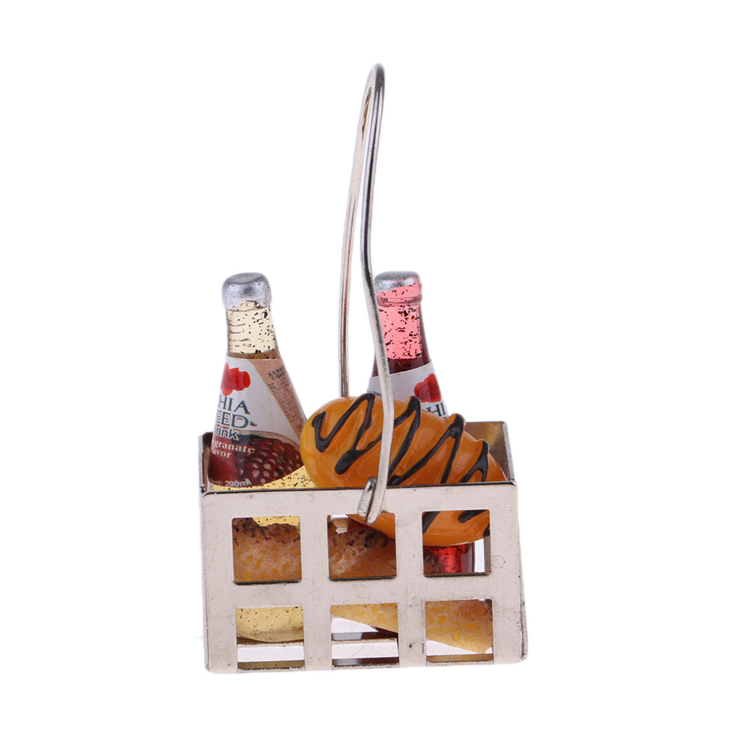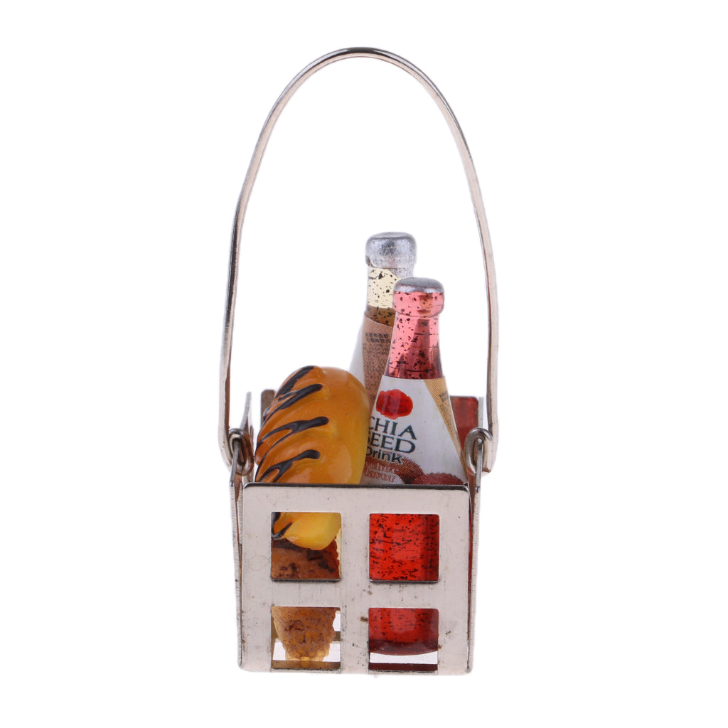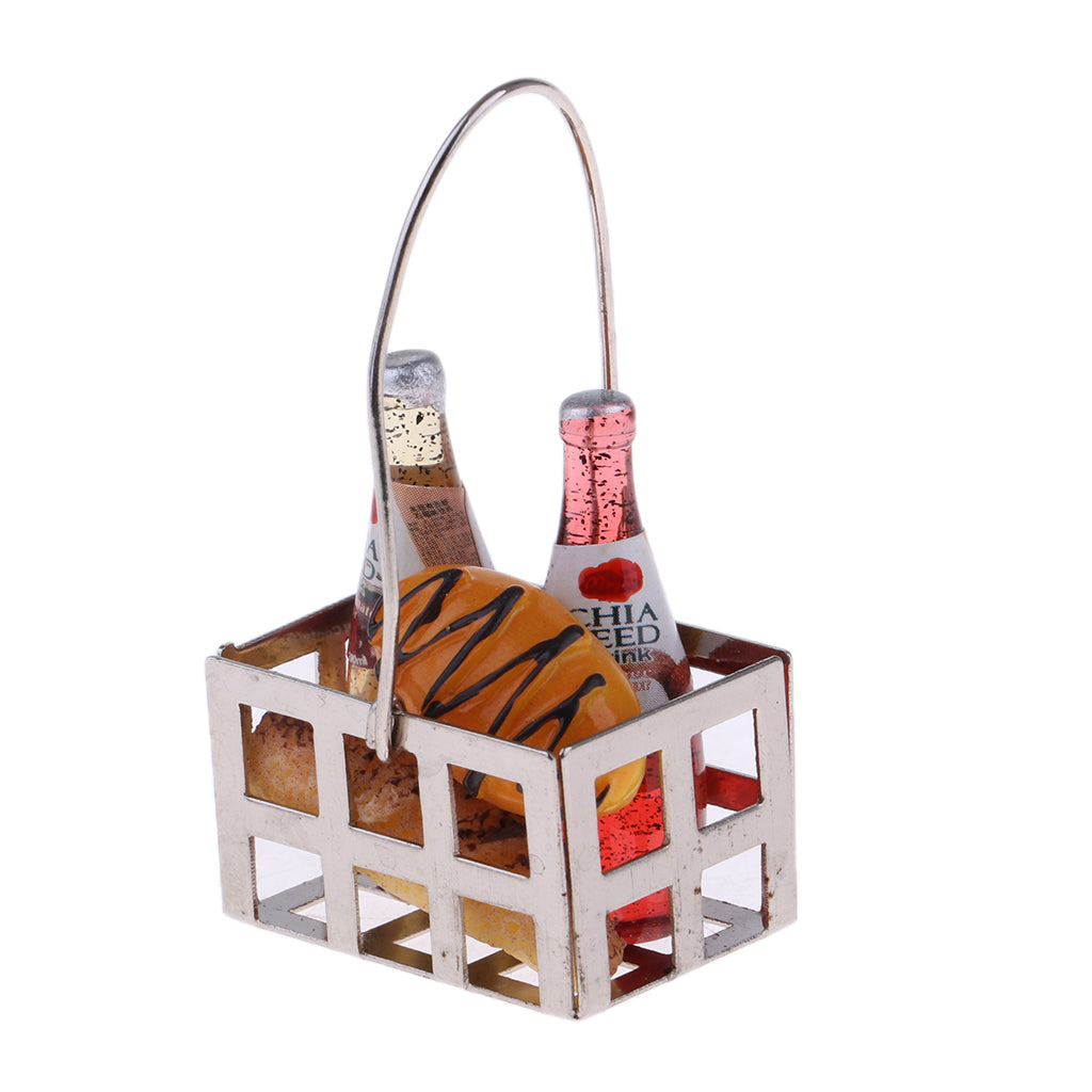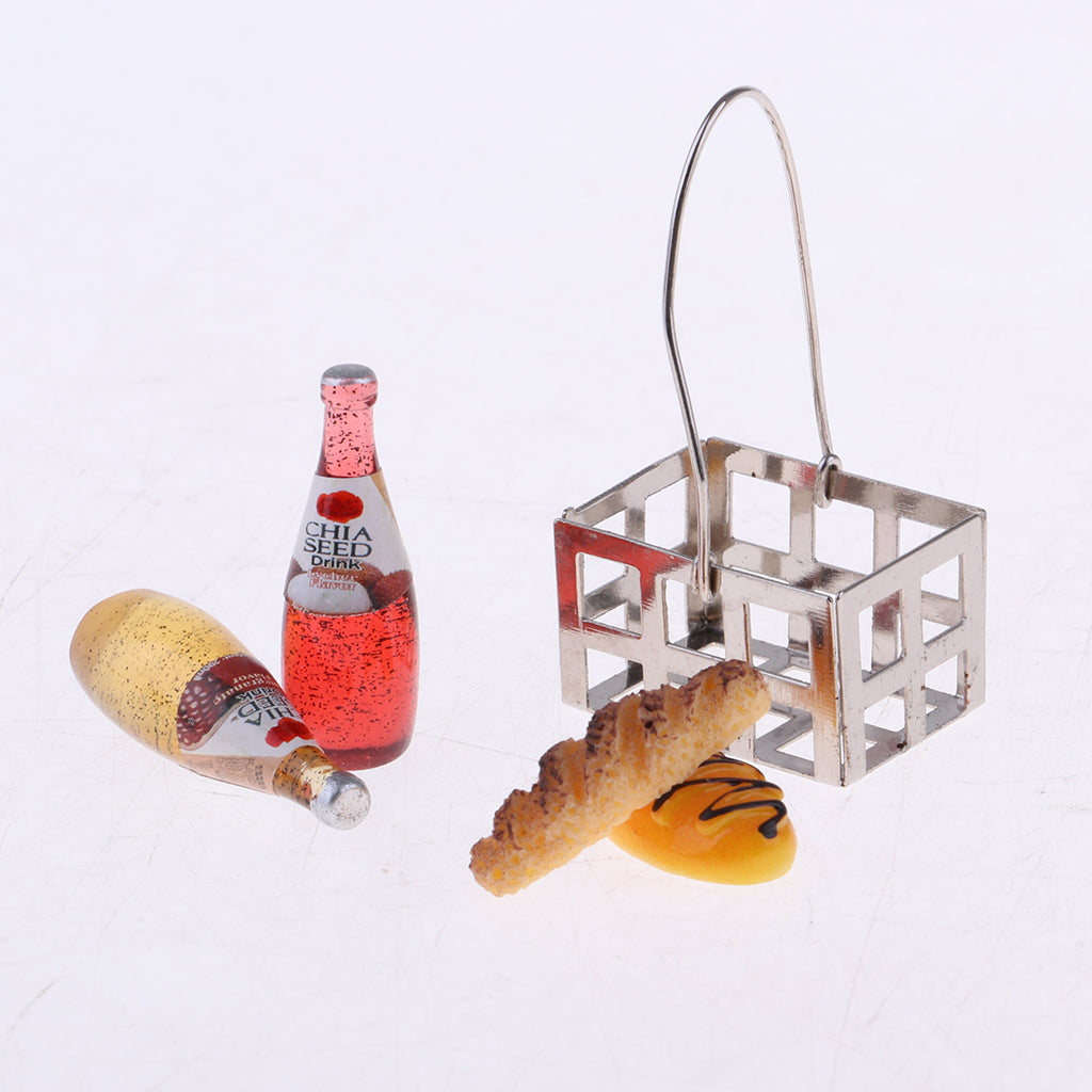 1/12 Dollhouse Miniature Groceries Bread Coffe Bottles & Metal Basket Kitchen Foods