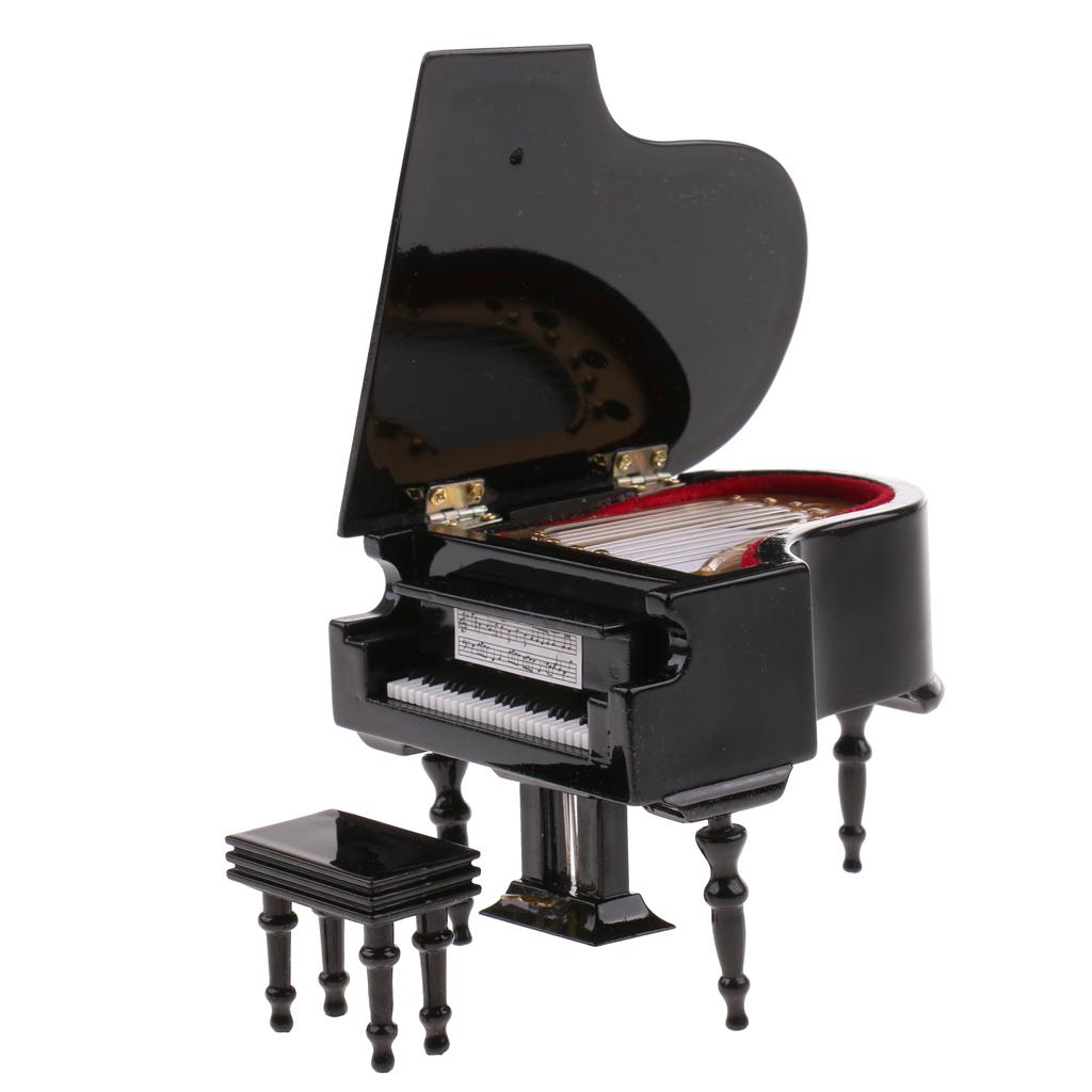 1/12 Scale Miniature Wood Piano Music Instrument Model with Stool and Box