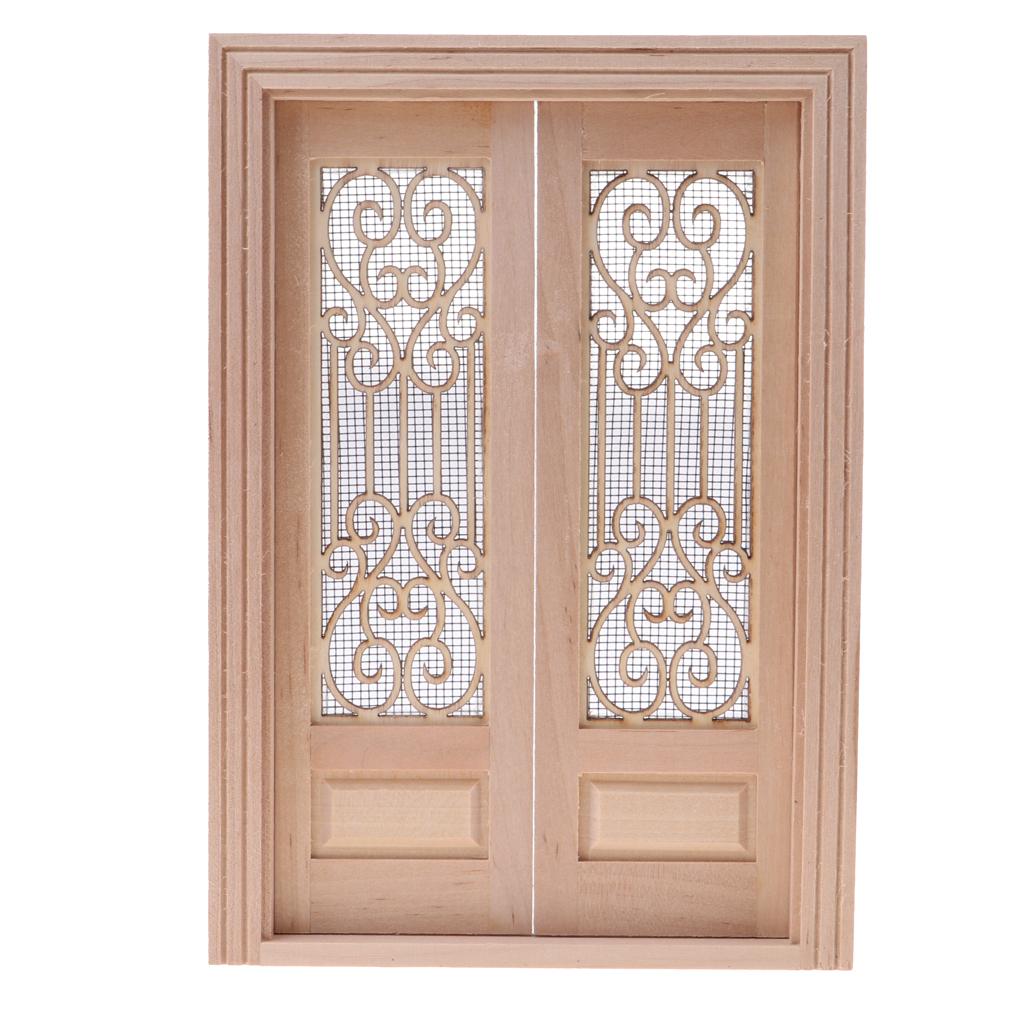 1/12 Scale Miniature Wood External Hollow Screen Double Door Unpainted Furniture for Dolls House Accessory