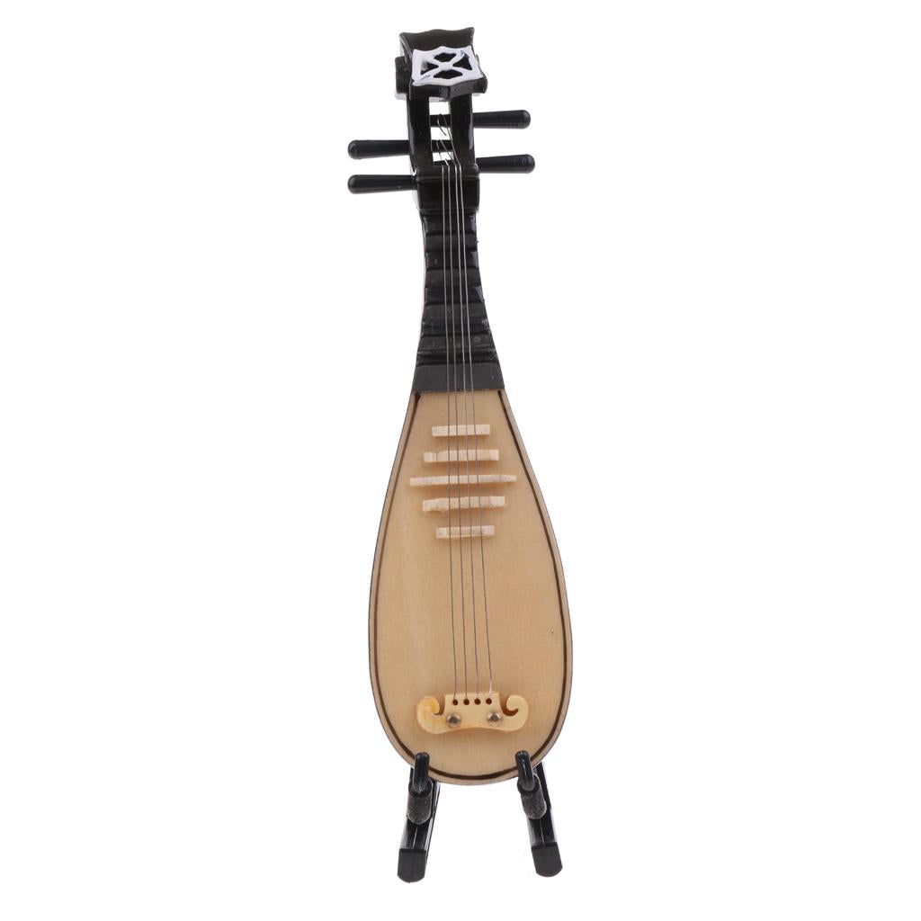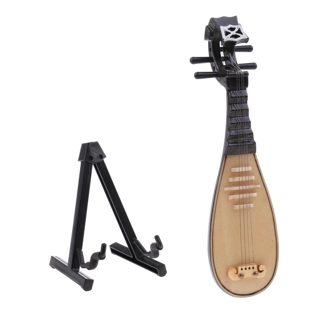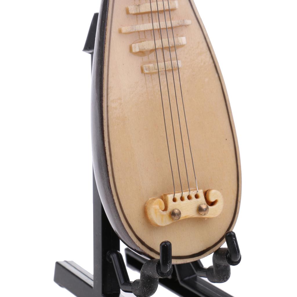 1/12 Scale Miniature Wood Chinese Pipa Music Instrument Model with Display Stand