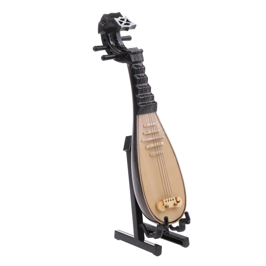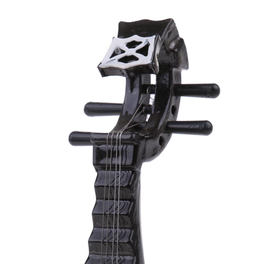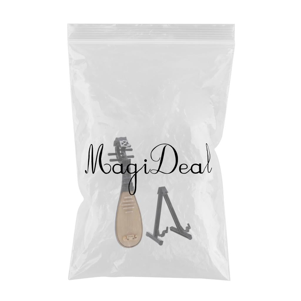 1/12 Scale Miniature Wood Chinese Pipa Music Instrument Model with Display Stand