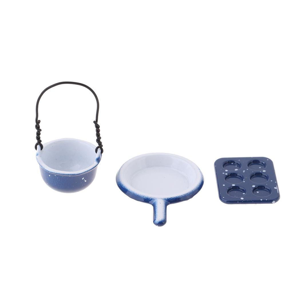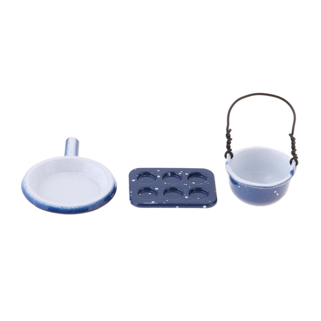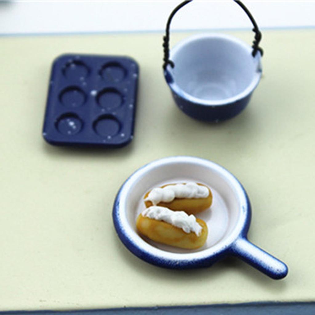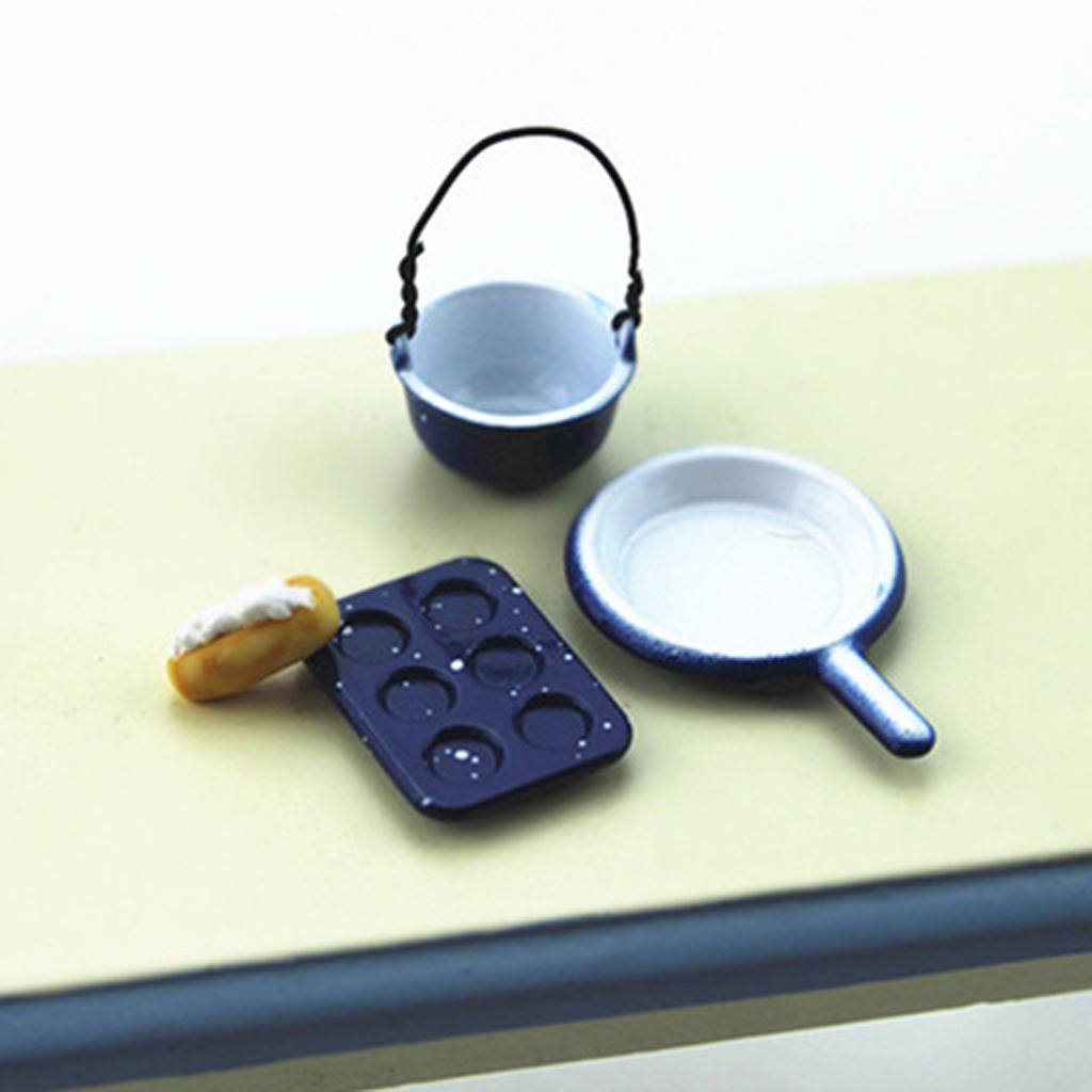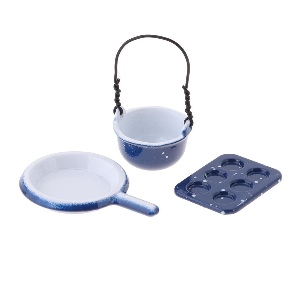 High-quality 1/12 Scale Dollhouse Miniature Furniture Cookware Tableware Ceramic Pastry Plate Frying Pan 3 Pieces Kit Kitchen Dining Table Decor