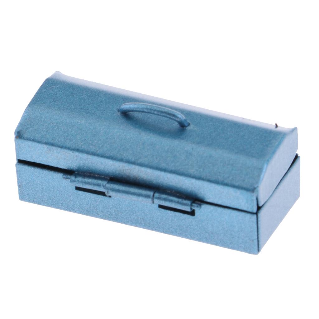 1/12 Scale Dollhouse Miniature Metal Tool Box Case Home Decor Blue