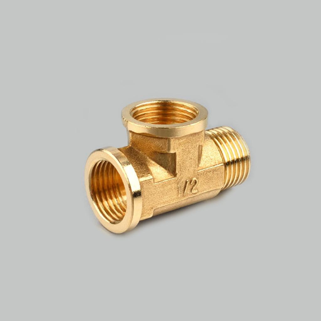 1/2'' // 3 Way Brass Female Female Male Tee Fitting Pipe Connector T-Junction - Thickened Wall - High and Low Temperature Resistant