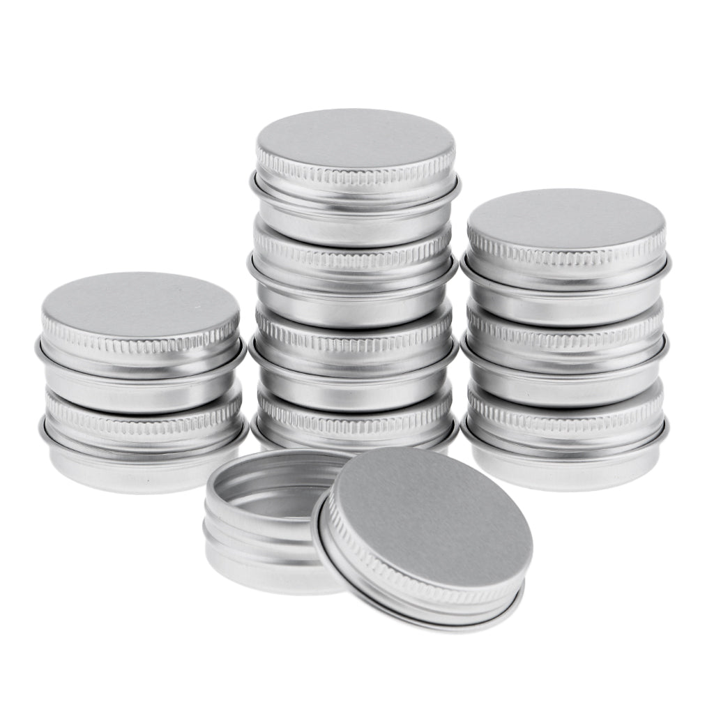 1/2-Ounce Screw Top Flat Aluminum Silver Slide Round Tin Containers For Lip Balm,Crafts,Cosmetic,Candles,Travel Storage Kit , Pack of 10