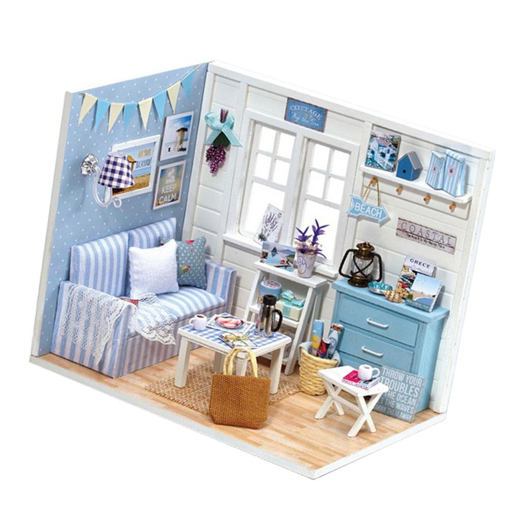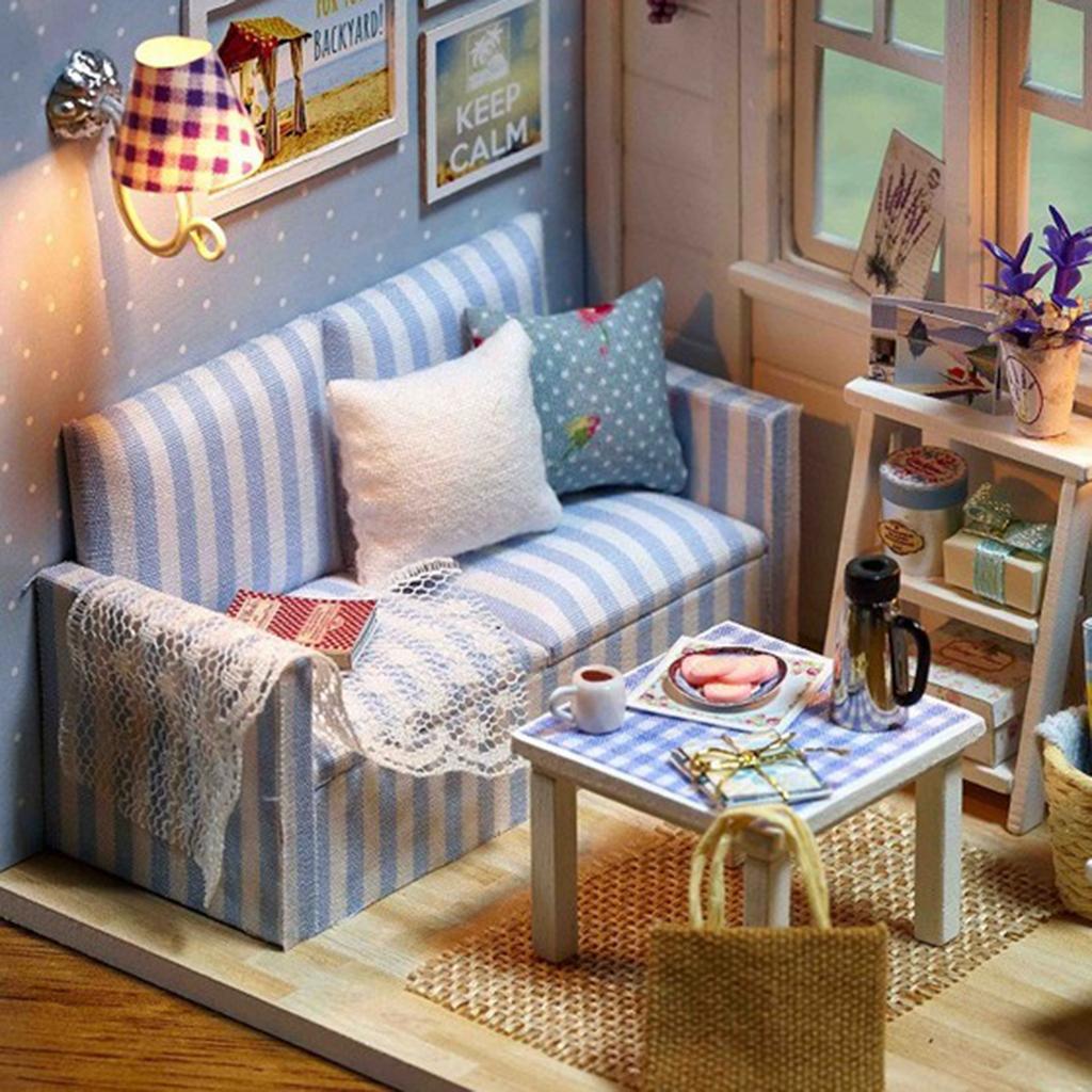 The model with furniture, LED lights, and various daily supplies, dust-proof cover, without batteries and glue, very lifelike, very
