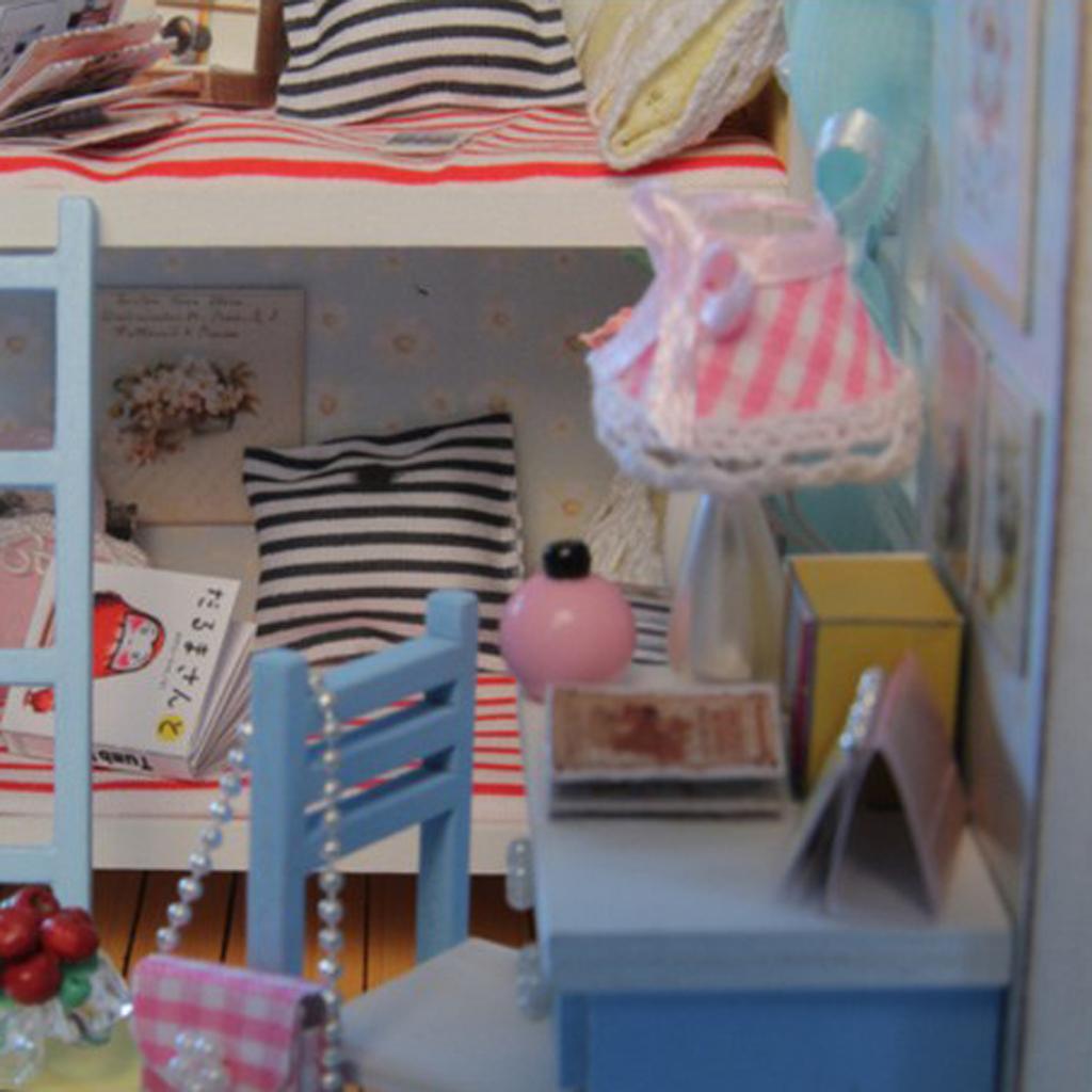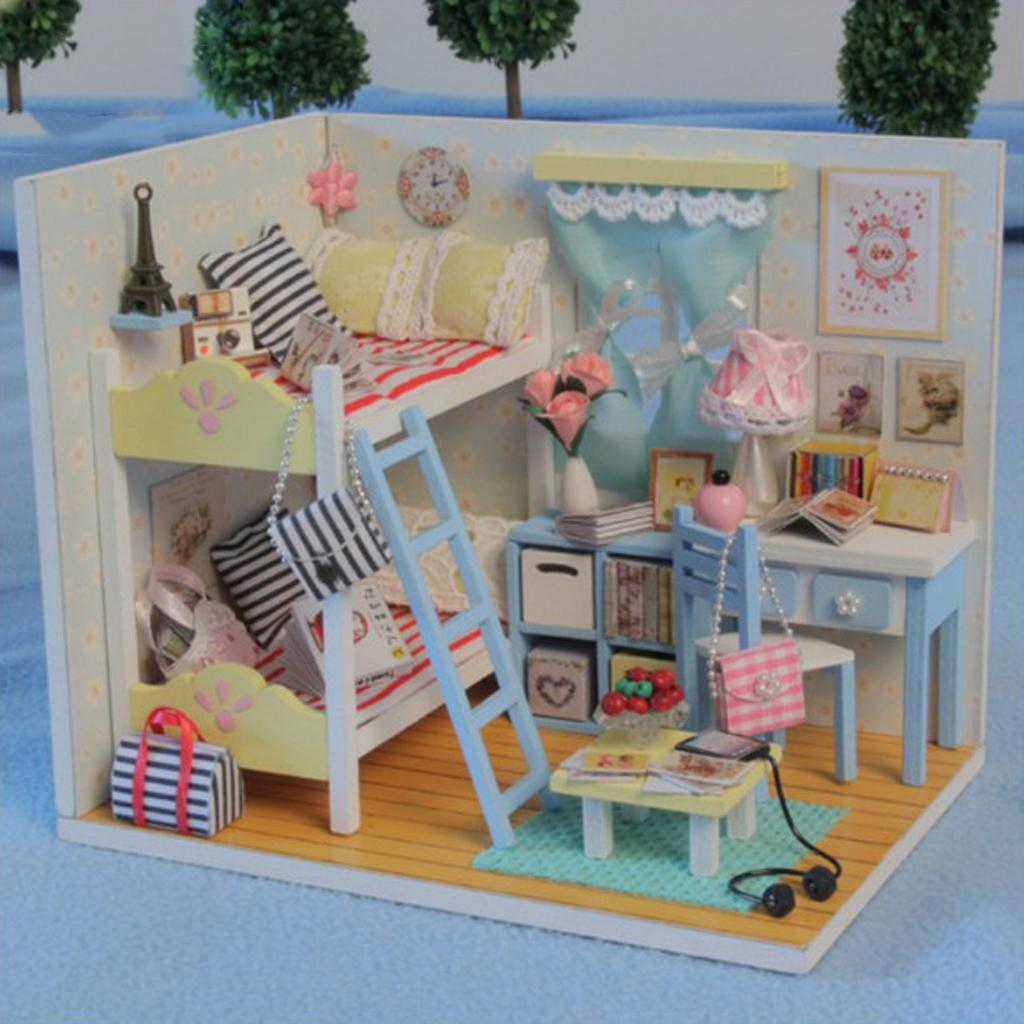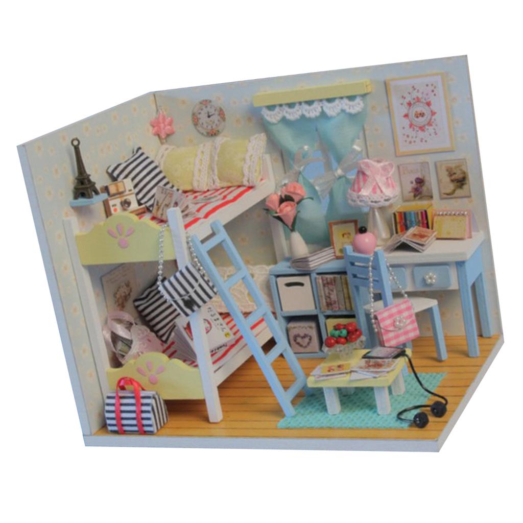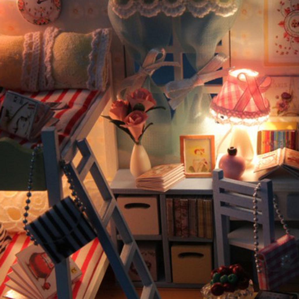 1/24 Dollhouse miniature furniture kit DIY wooden handmade European simple style prince doll house kits model w. home item accessories (LED light, bed, chair, desk, and photo frame etc. ) and lid (it can keep the house clean and tidy by making it free of dust.