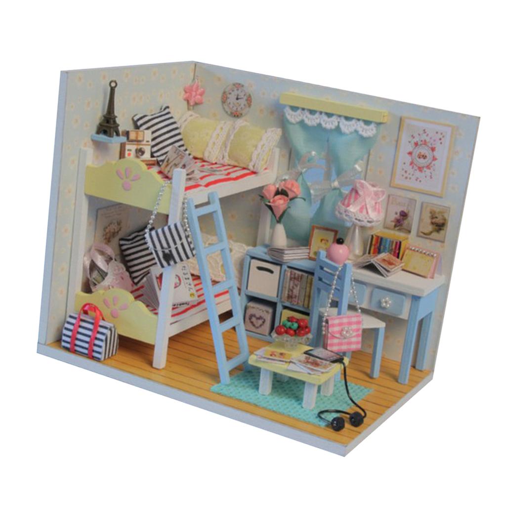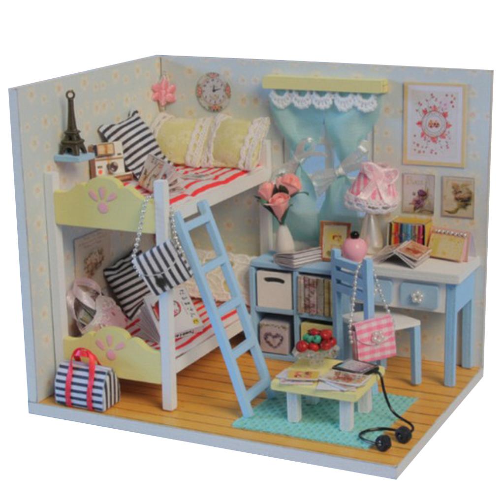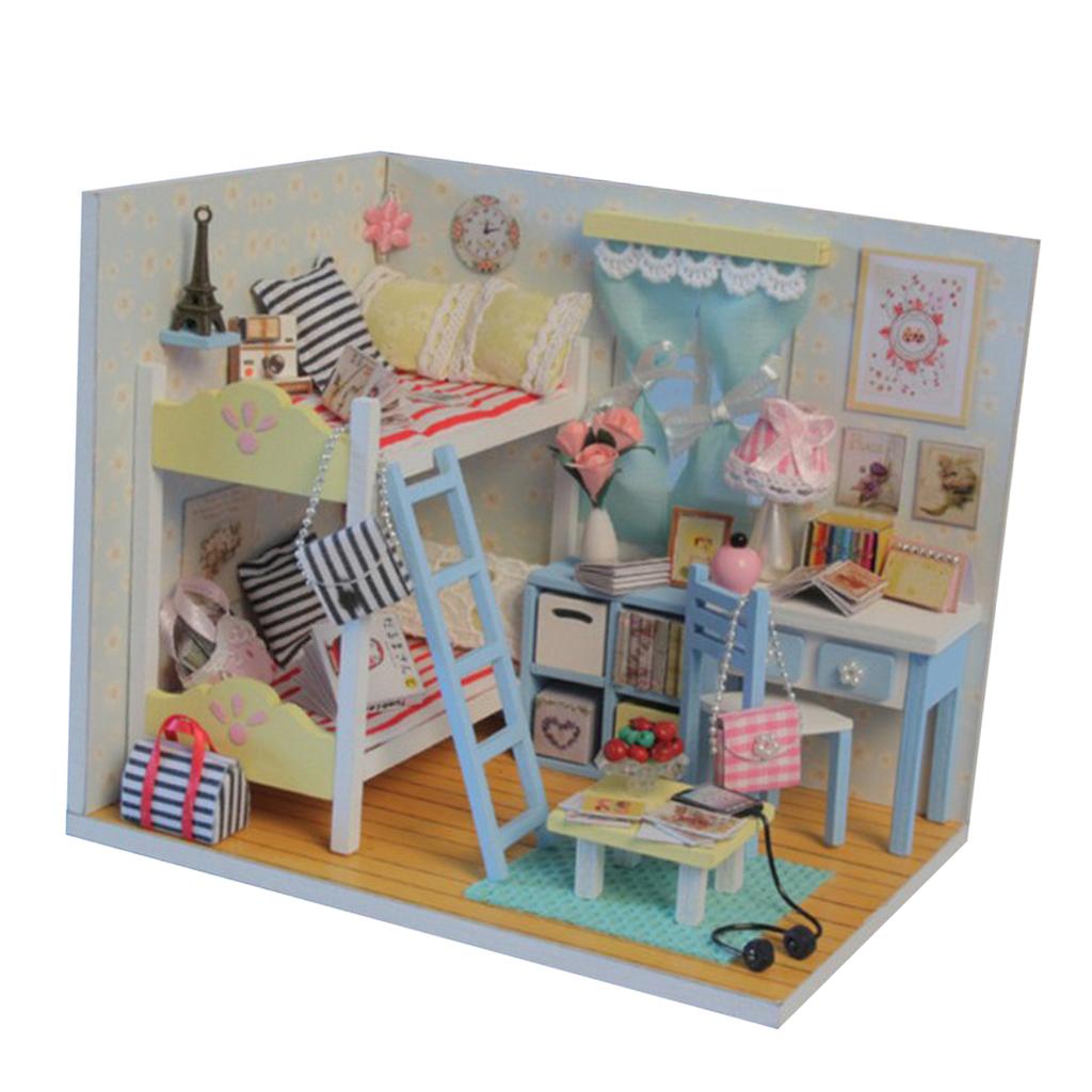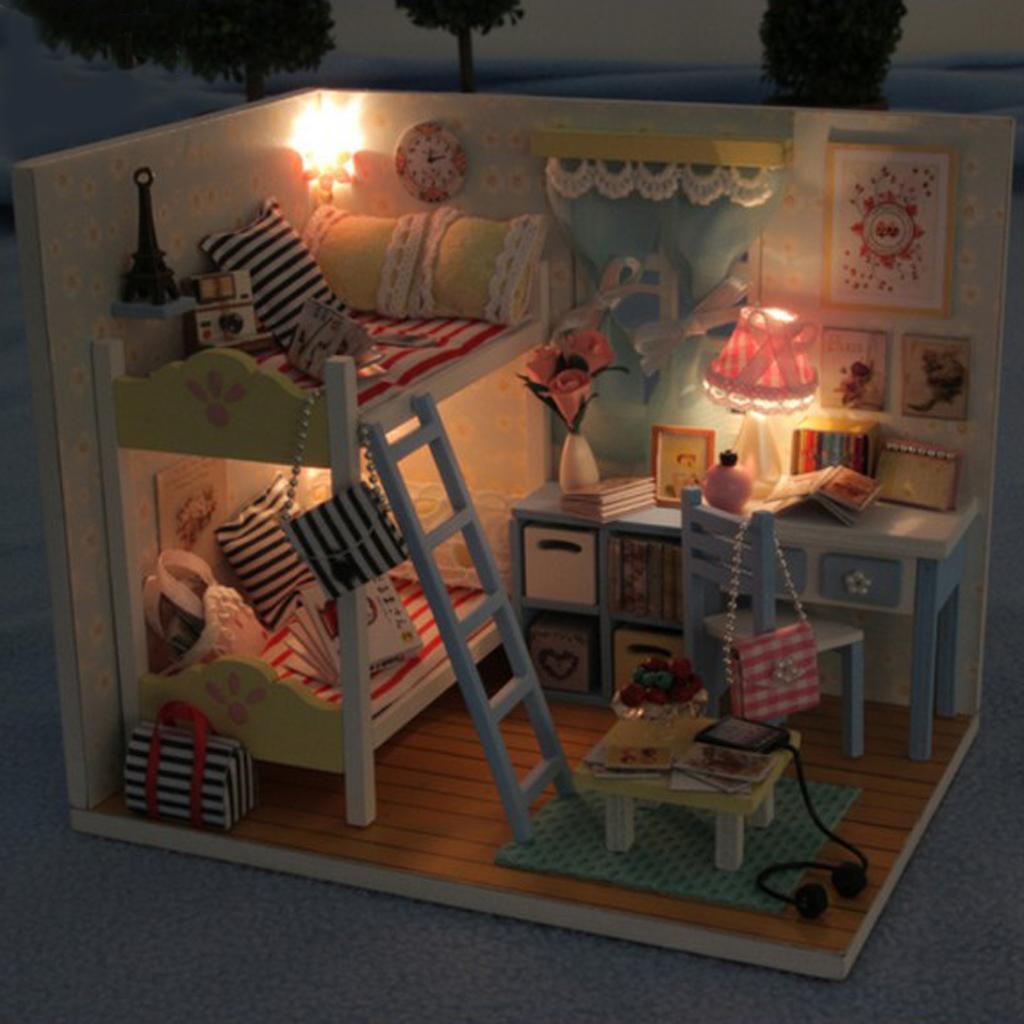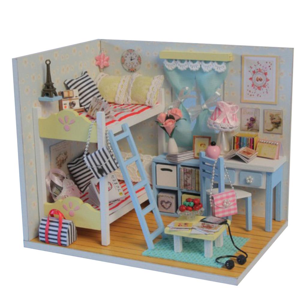 1/24 Dollhouse miniature furniture kit DIY wooden handmade European simple style prince doll house kits model w. home item accessories (LED light, bed, chair, desk, and photo frame etc. ) and lid (it can keep the house clean and tidy by making it free of dust.