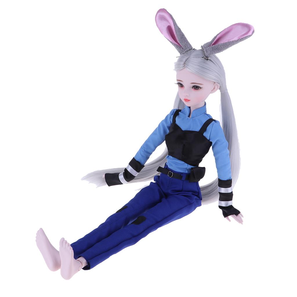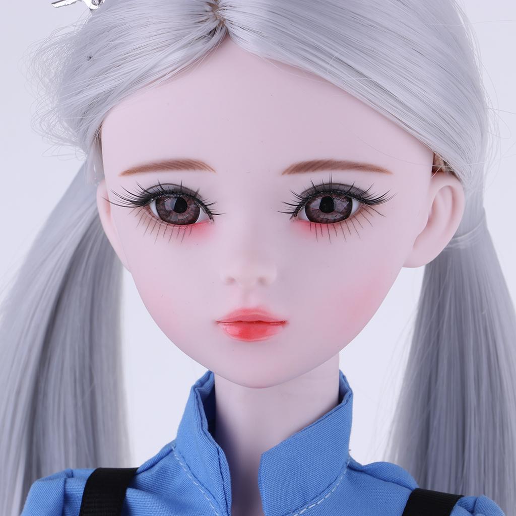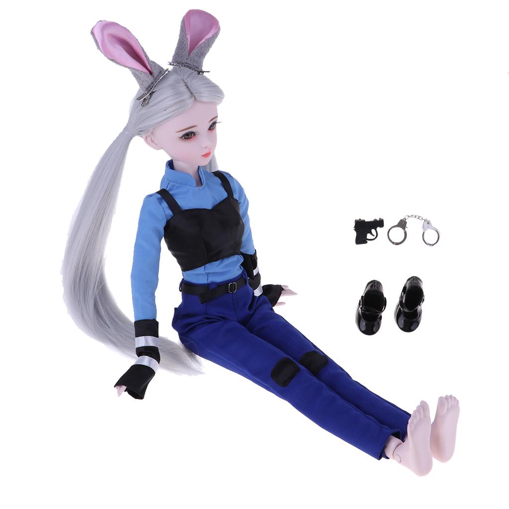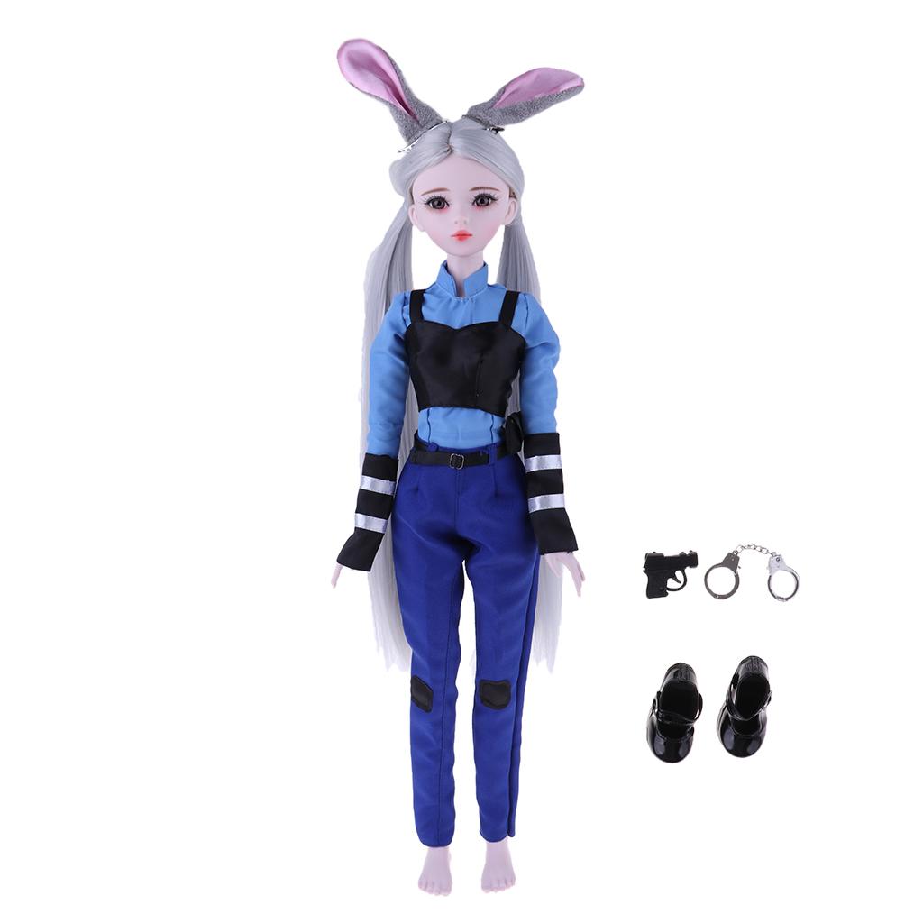 Fashion jointed career girl dolls wearing rabbit policewoman uniform set(can take off), with gray straight hair, makeup face and accessories