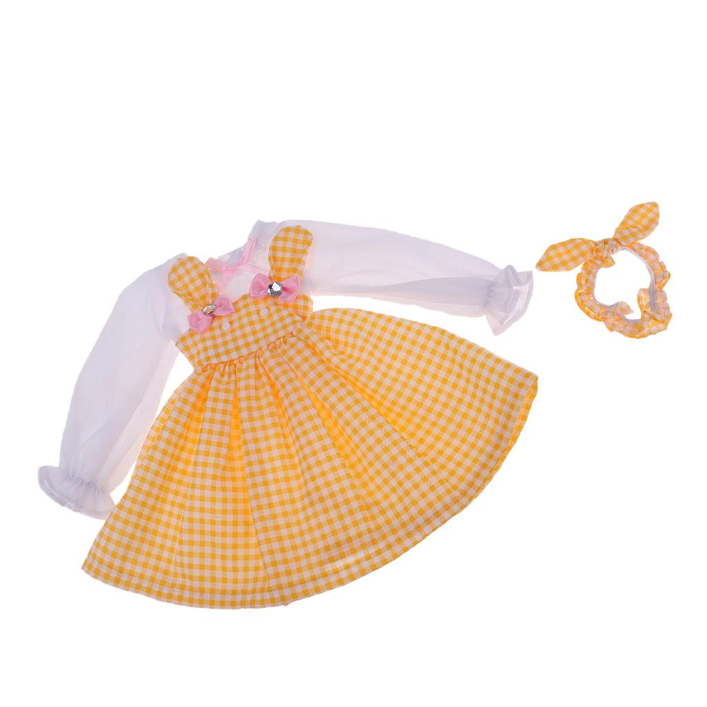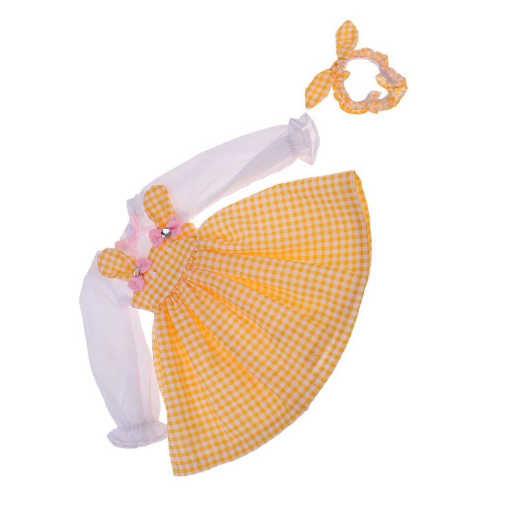 Fashion and lovely long sleeve rabbit plaid dress headband outfit for Ball Jointed Doll Dress Up.