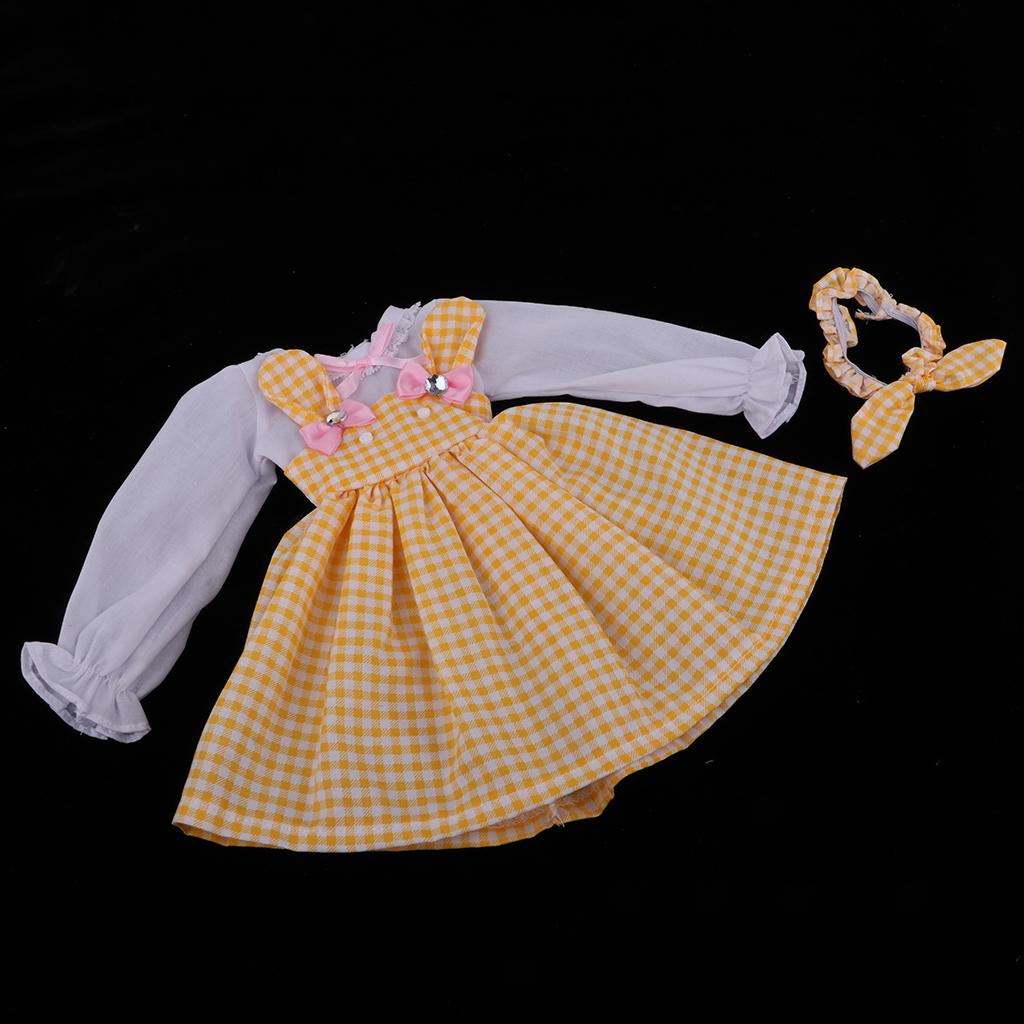 1/3 BJD Smart Dolls Clothes for Supper Dollfie DOD SD DZ Long Sleeve Yellow Dress Headband Outfit