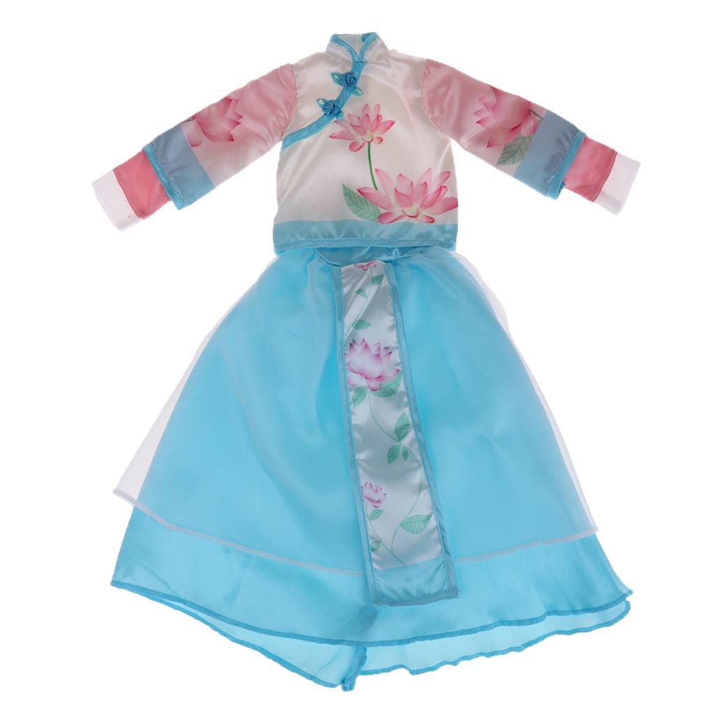 Fashion princess chinese style cheongsam, dress ancient costume with lotus pattern party clothes for 1/3 girl dolls dress up accessories