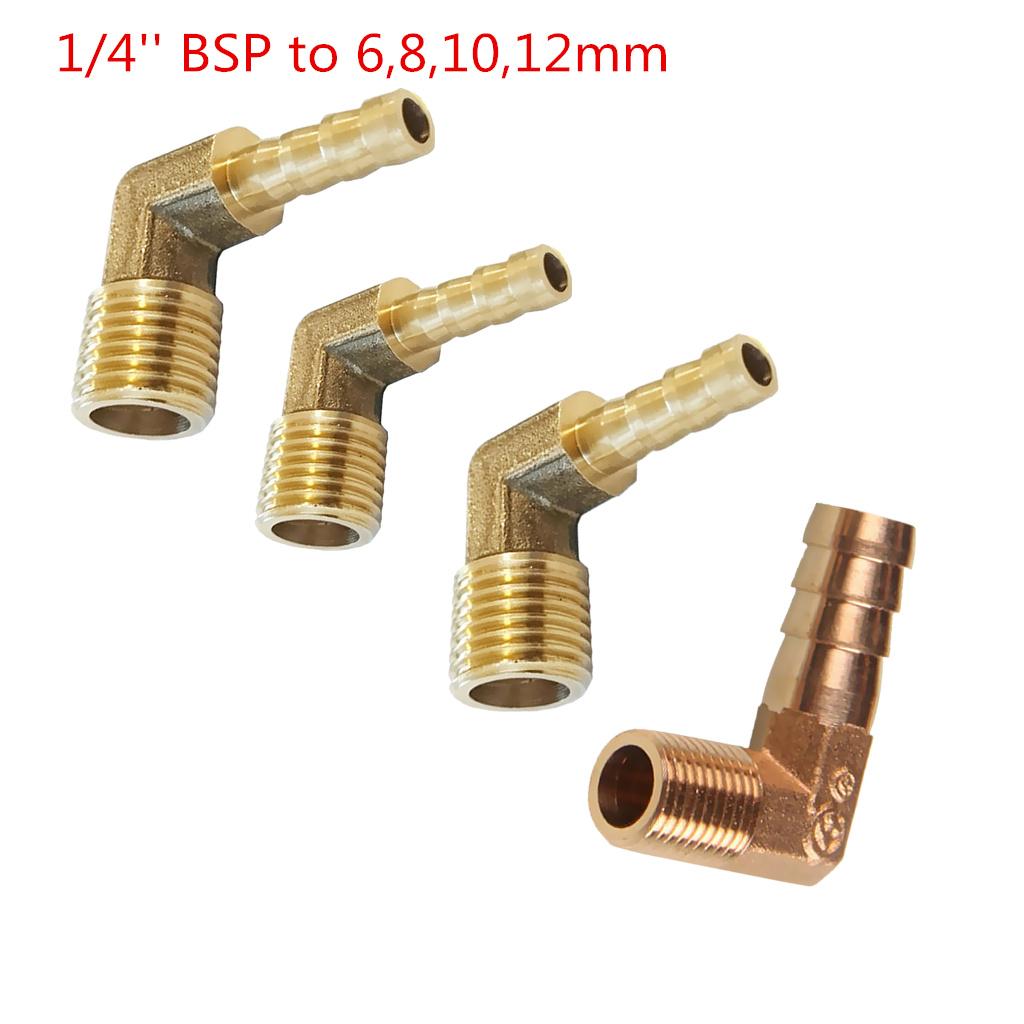 1/4 BSP to 6,8,10,12,mm Brass 90 Degree Male Elbow Barbed Hose Tail Pipe
