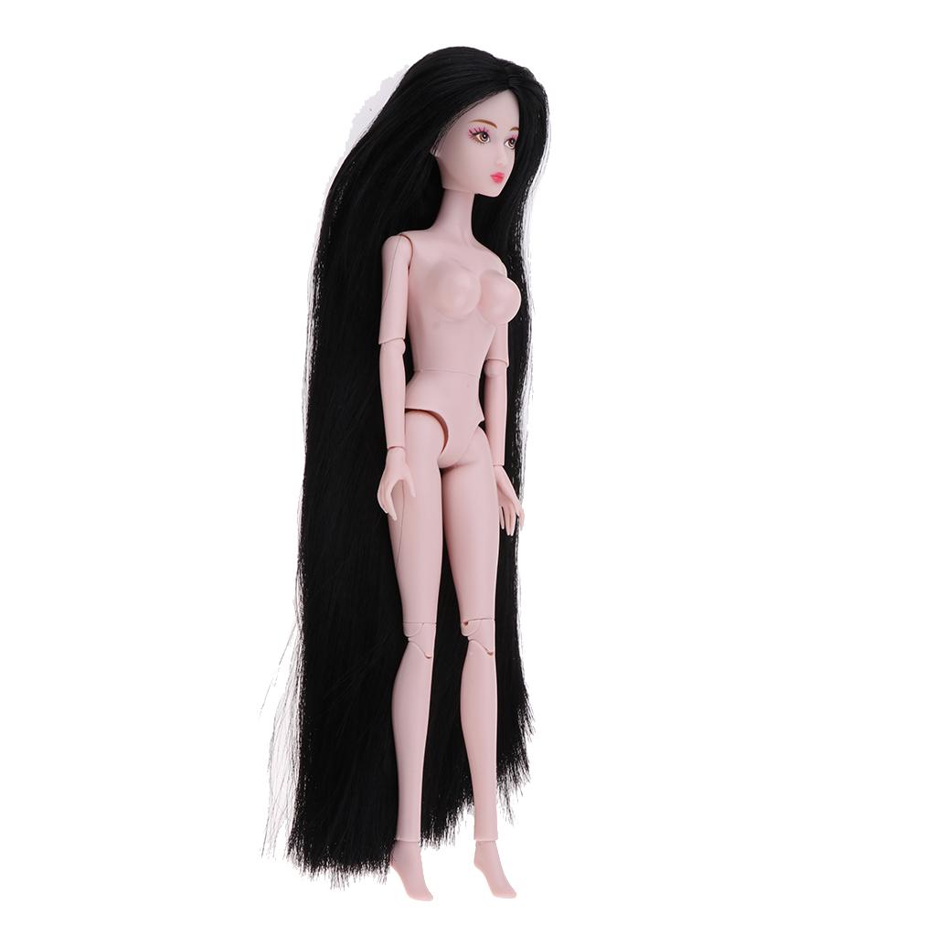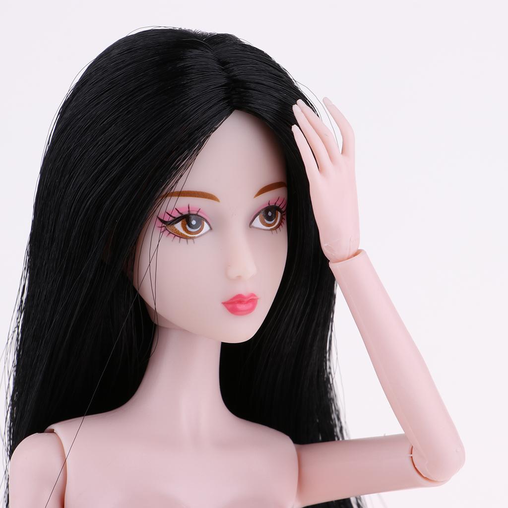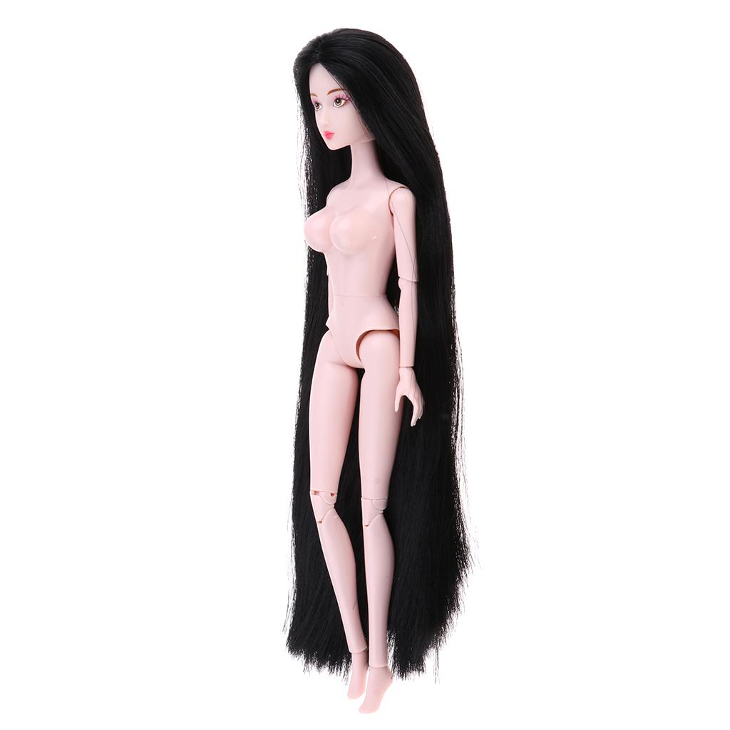 1/6 BJD Ball Jointed Dolls Pink Skin Tone Nude Body Girl Model with Head and Long Straight Black Hair
